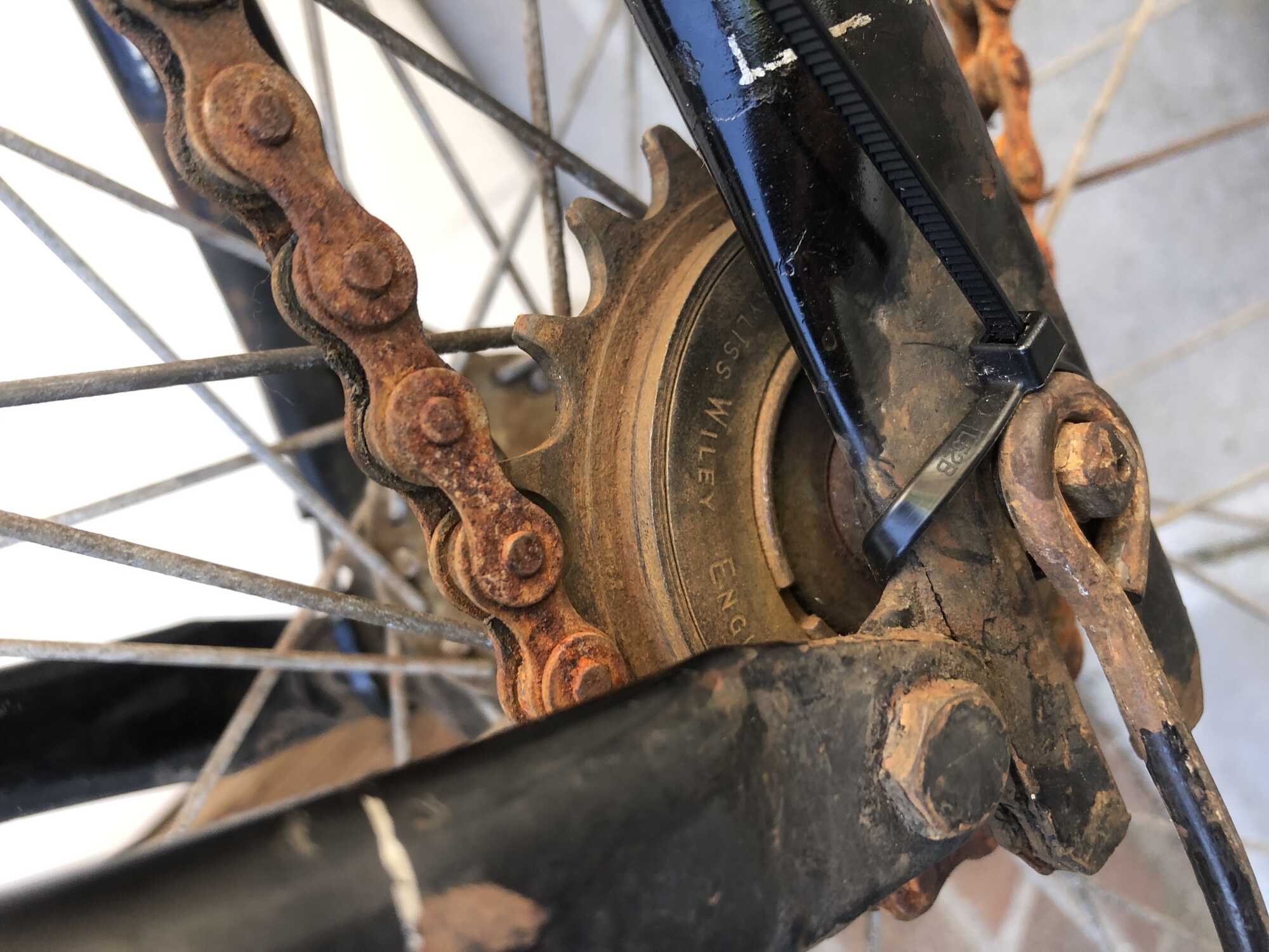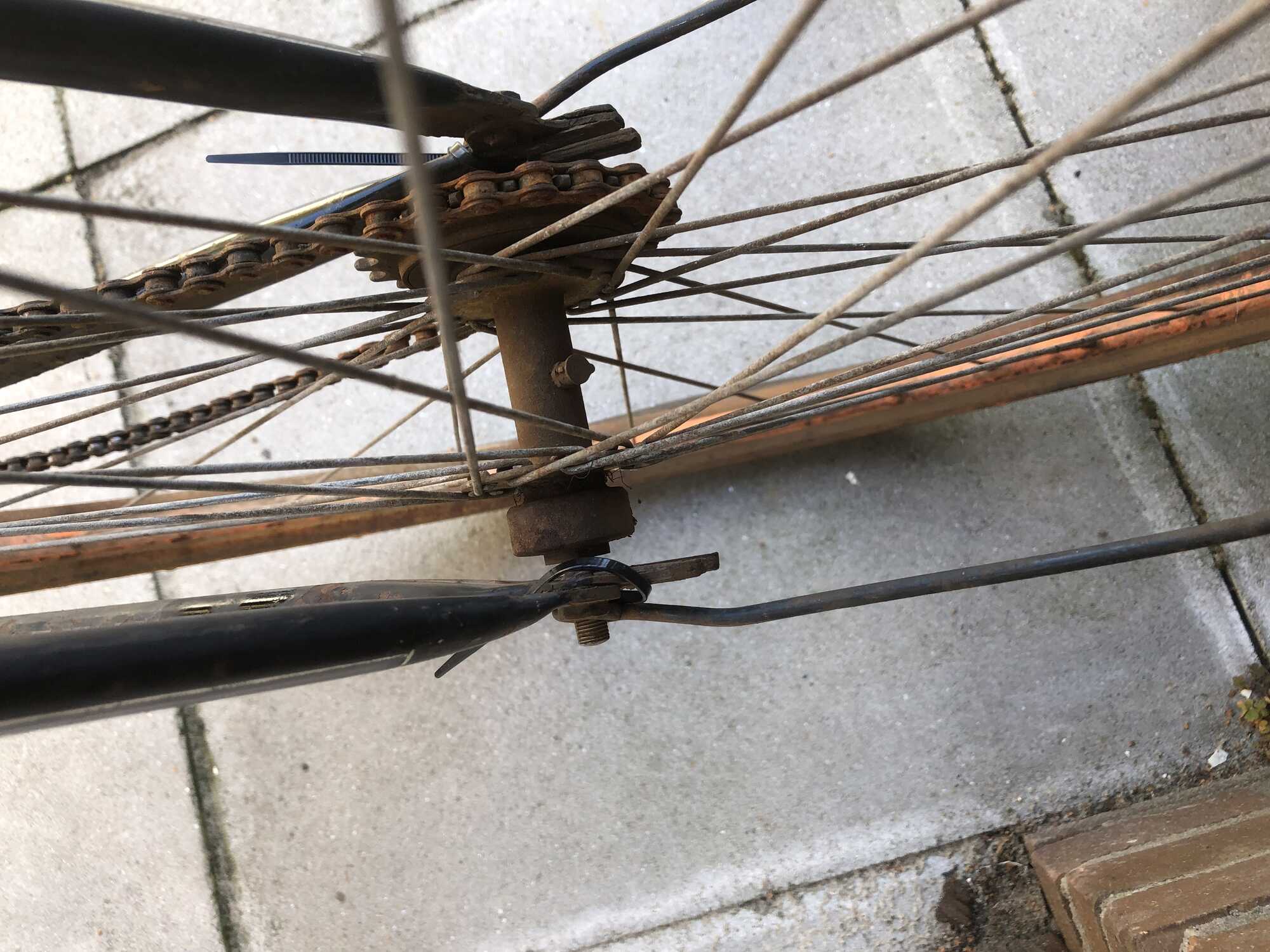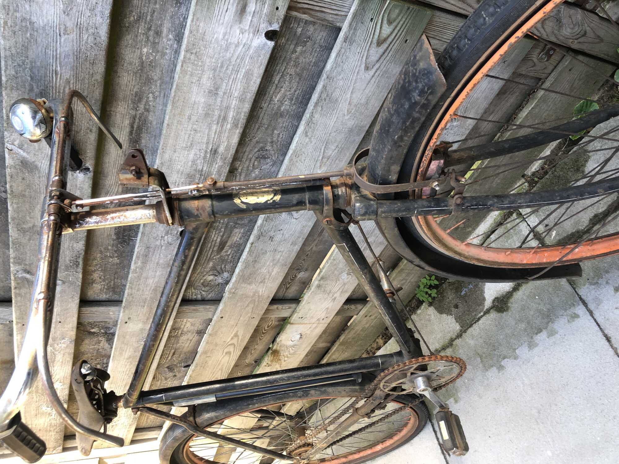 Hij is wel oud, maar ik denk dat hij na-oorlogs is. Het voorwiel lijkt mij 32-spaaks.