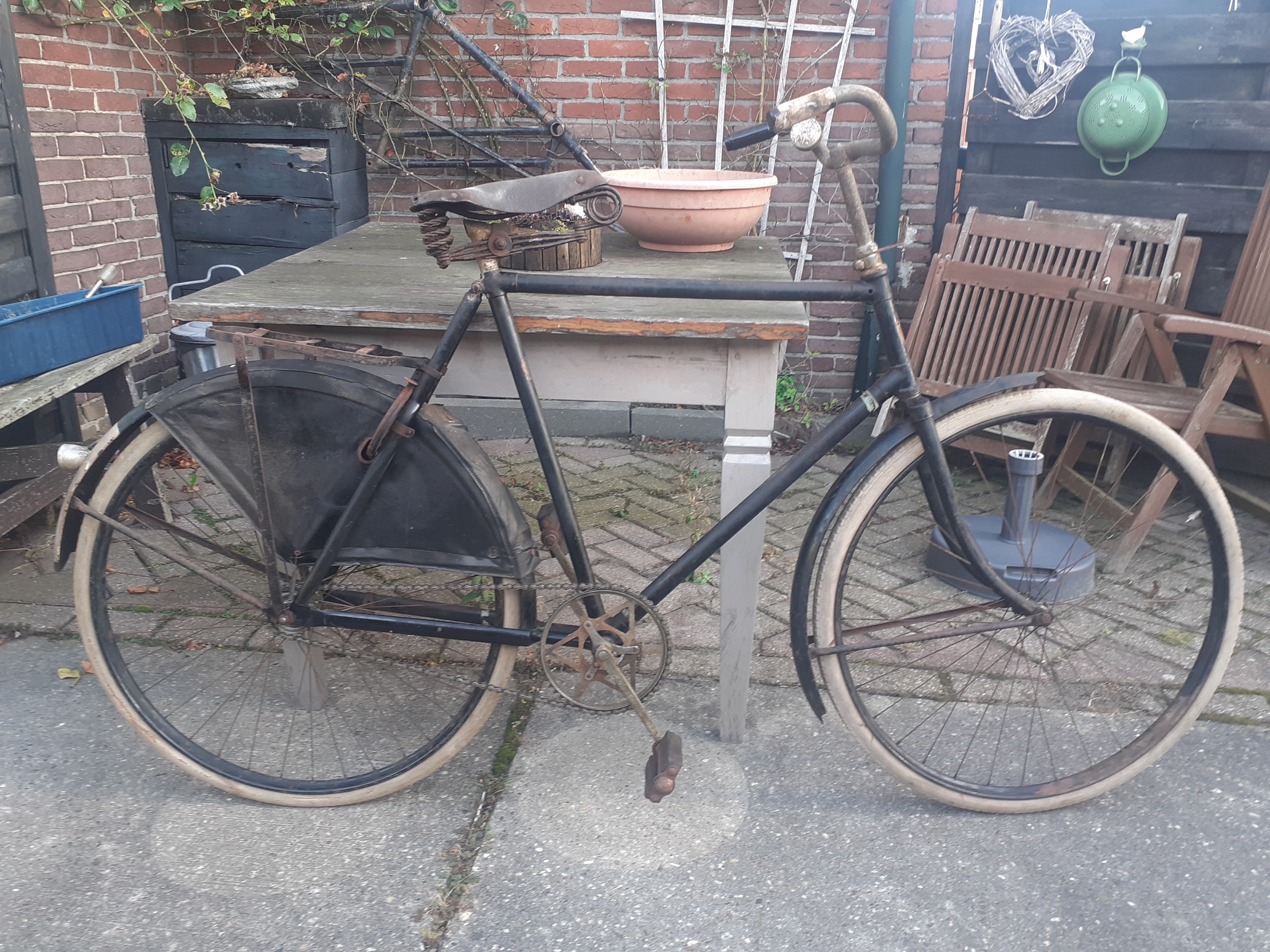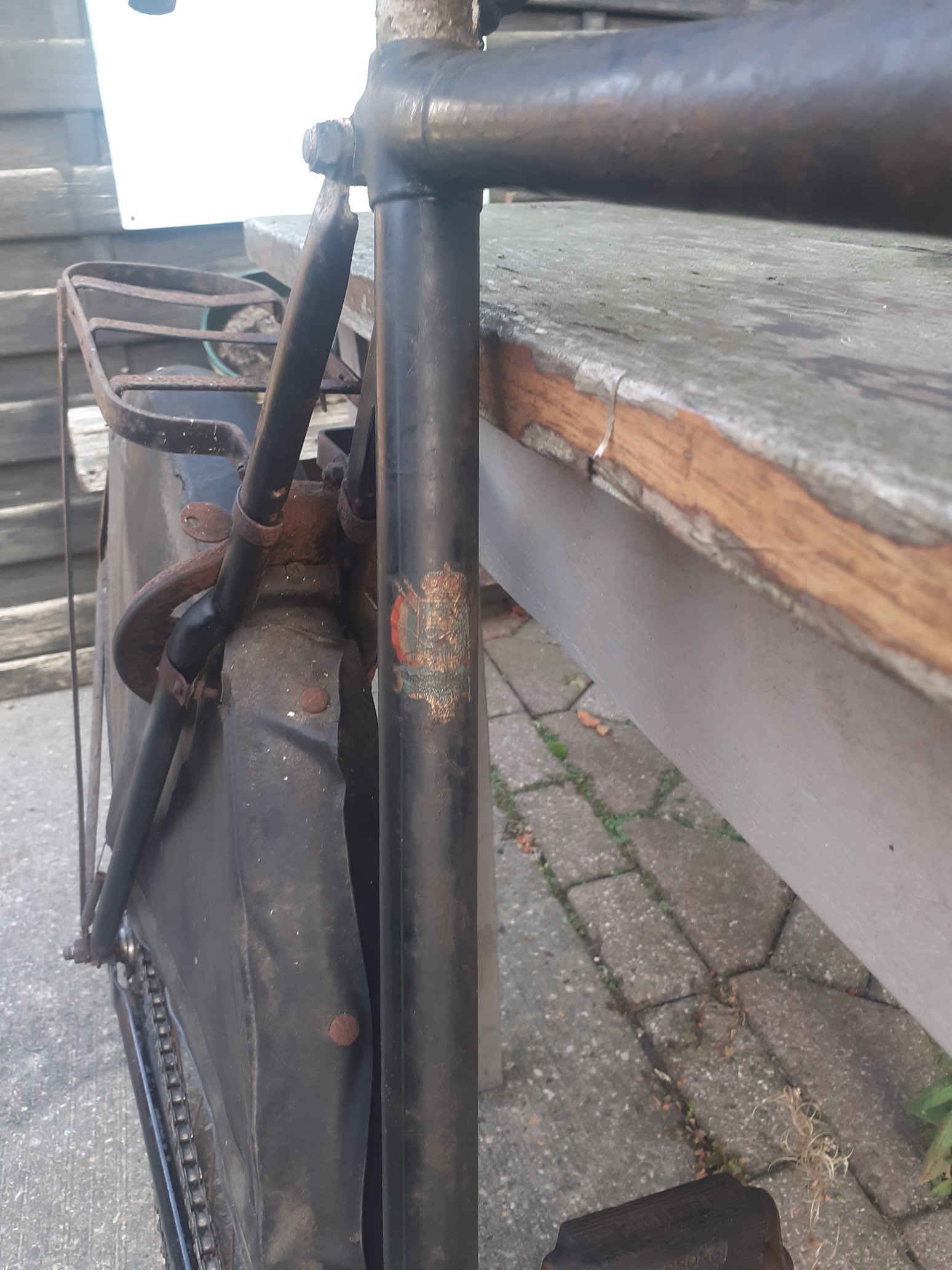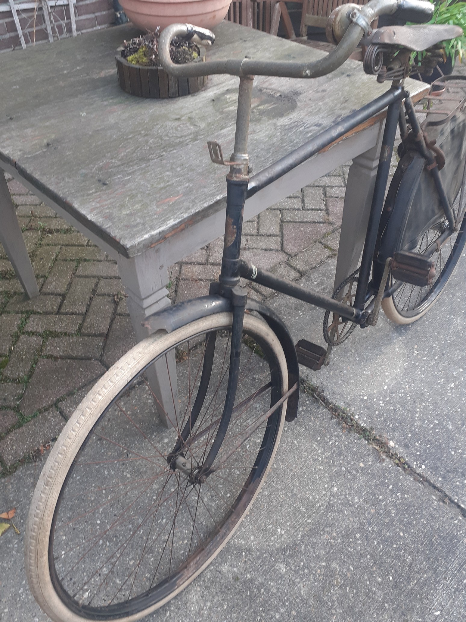 Deze heb ik pas geleden weten te bemachtigen . Prachtfiets !! Ik dacht in 1e instantie dat hij in de jaren 30 een makeover gehad had , daar twijfel ik nu toch over ! Behalve de achternaaf ( Bendix) lijkt alles origineel. Gezien de merktekens op diverse onderdelen denk ik aan 1913 tot 1917 als bouwjaar. Ik zou hier graag meer info over krijgen .