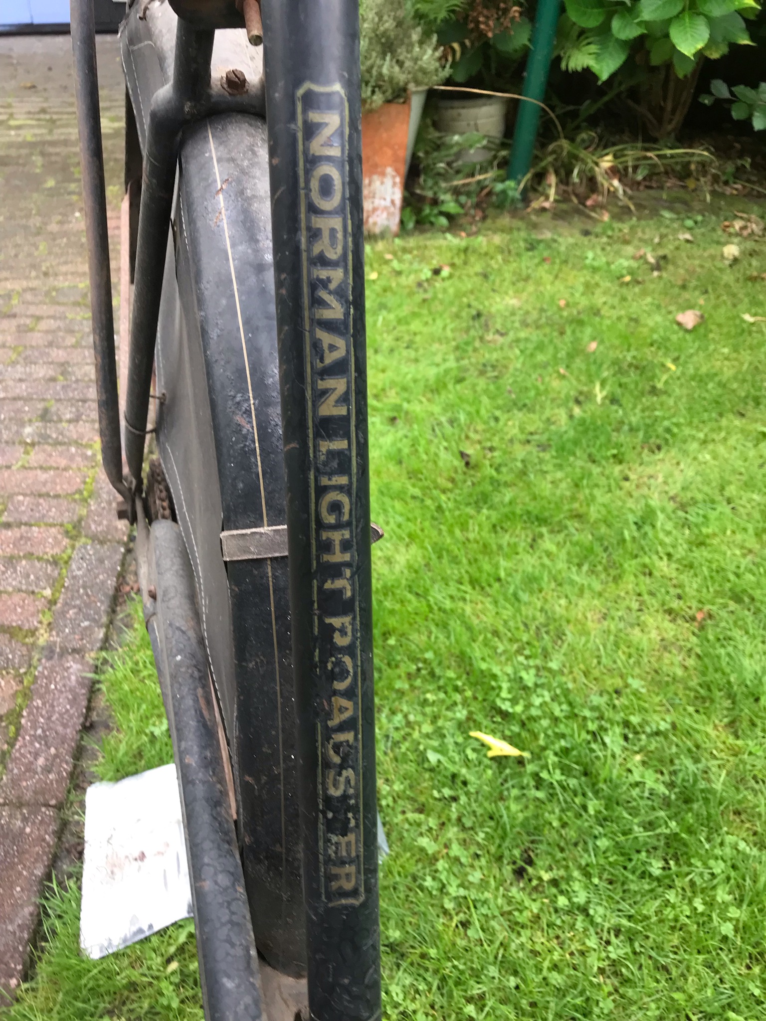 Deze oude fiets is Engels, het merk is Norman light roadster.