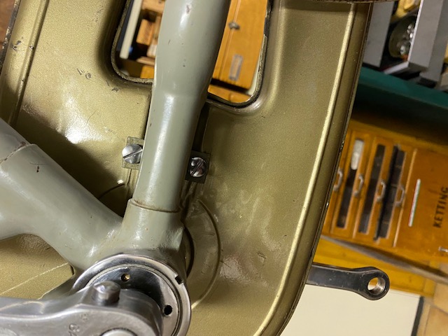De aangekochte bruinige kettingkast heeft nagenoeg dezelfde maat. En in het foldermateriaal van begin jaren 50 zie ik dit model) met grote verchroomde sierplaat) terug.