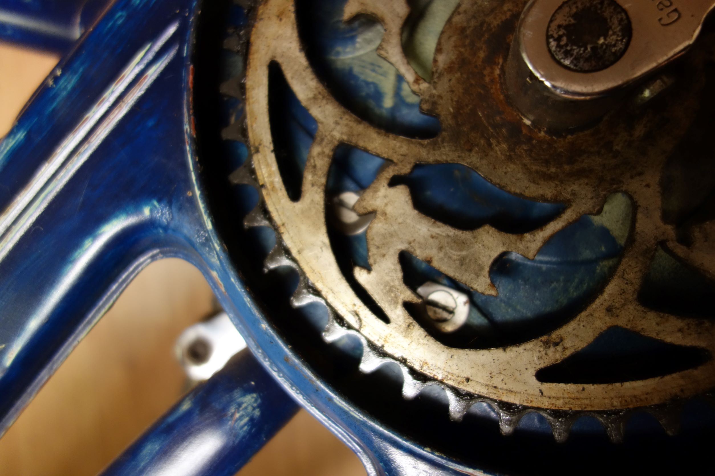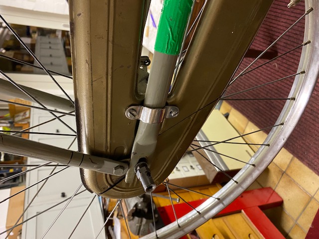 Bij grote kettingwiel heb ik hem bevestigd aan de lippen die reeds aan het frame zaten. Met boutjes met grote koppen.
