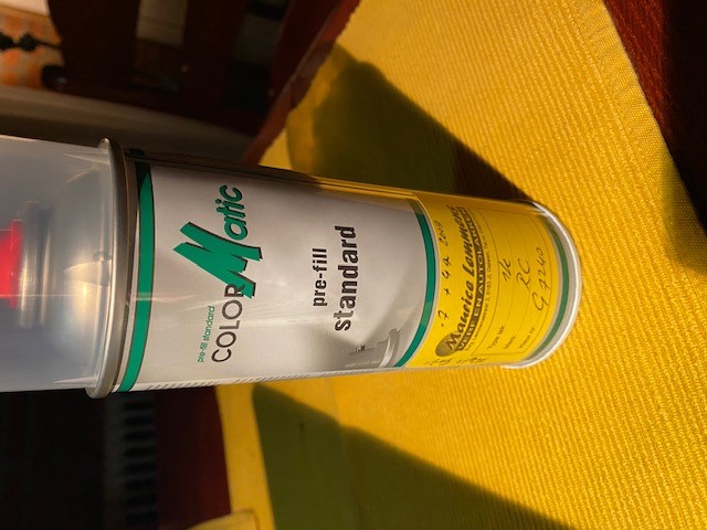 Maar goed in Geleen zit Maurice Lemmens met verf en autolakken en die doet zich heel veel moeite om aan de hand van de waaier RC (Rainbow Colors) bij de juiste kleur te geraken.