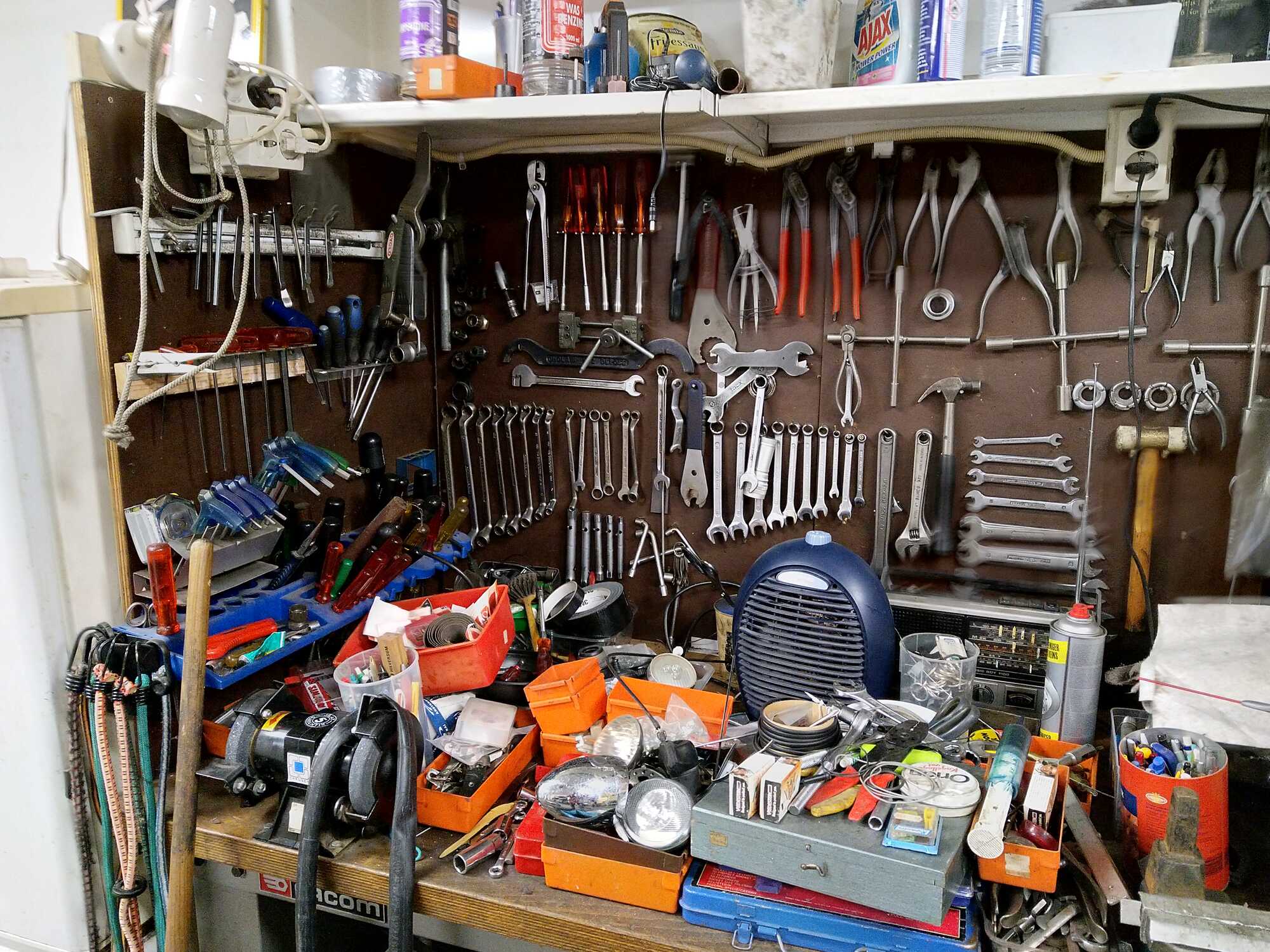 Fietsenmaker Hunting aan de Neuweg 48 te Hilversum stopt met zijn zaak en ruimt zijn werkplaats op; veel is al weg maar er zijn nog wel wat onderdelen en gereedschap waarvoor hij een koper zoekt. Bij belangstelling kun je hem bellen op tel 035-6214572. Hij verstuurt niet, dus je moet het wel komen halen in Hilversum. Hierbij wat foto's die ik hedenmorgen heb gemaakt: