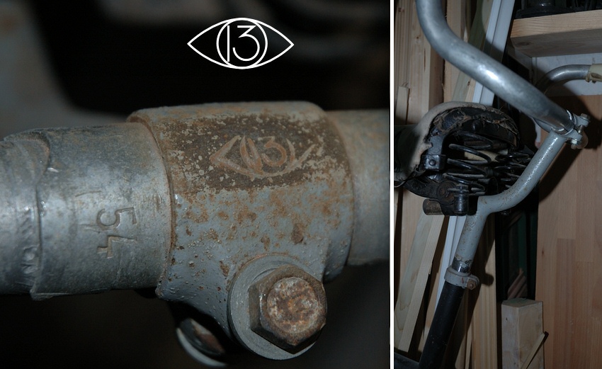 Het niet al te best ingeslagen logo lijkt op een oog met daarin het cijfer 13 zoals wat ik bovenaan getekend heb.