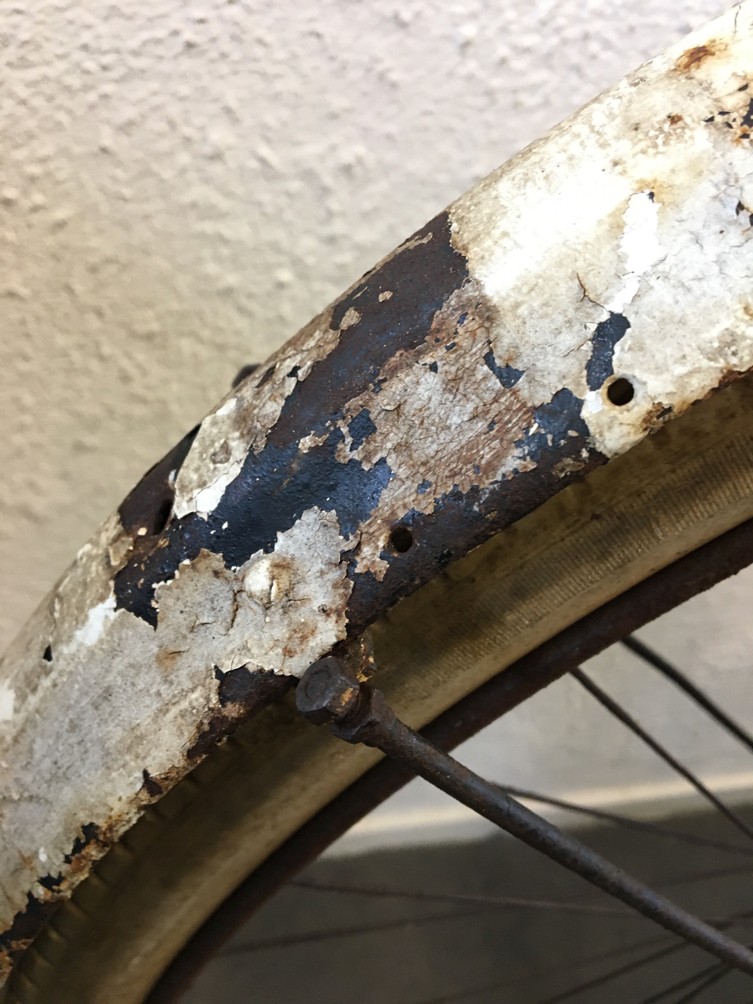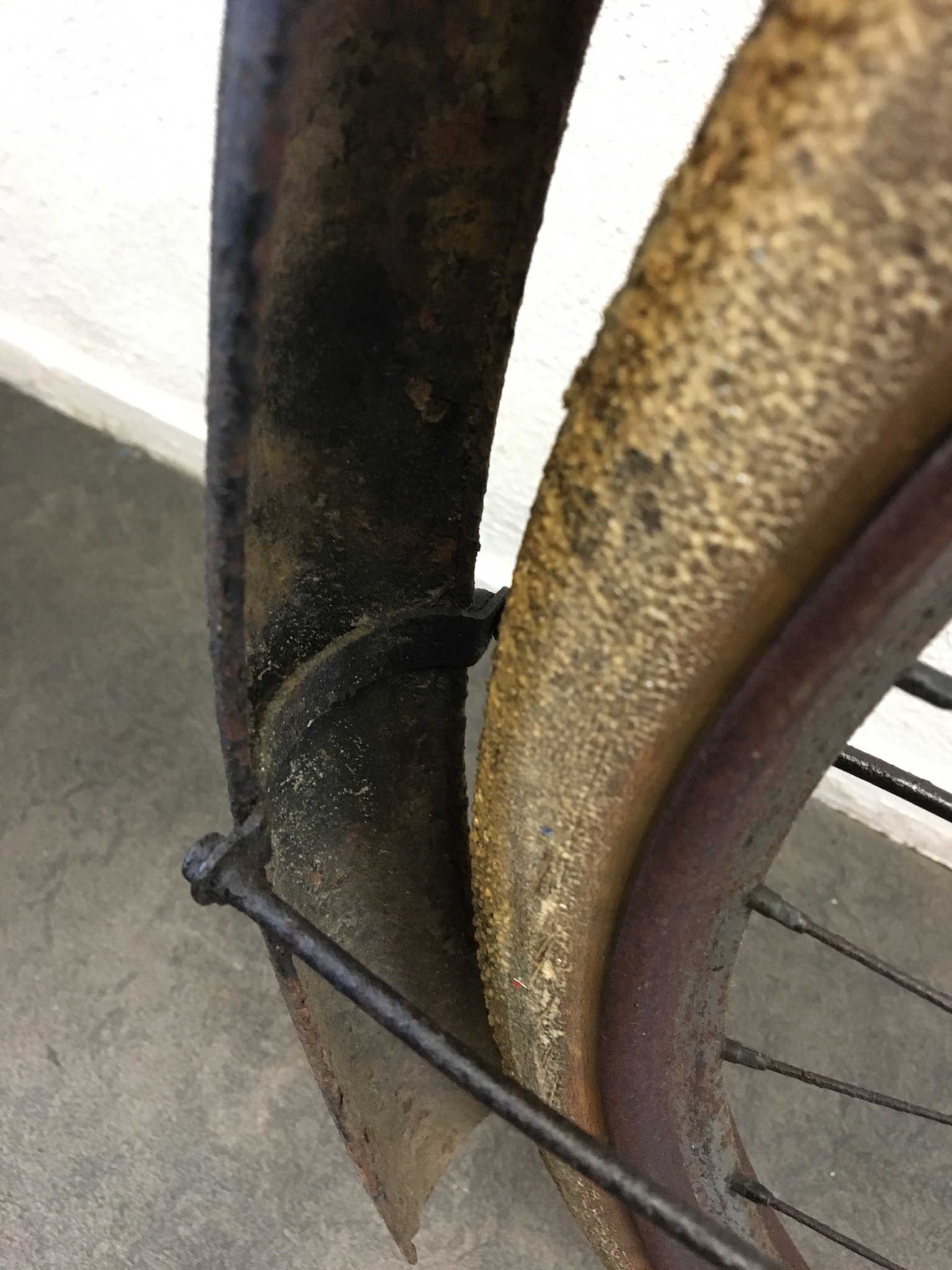 Wat er nog wel was waren de spaken (op 6 gebroken stuks na) en de velg.
