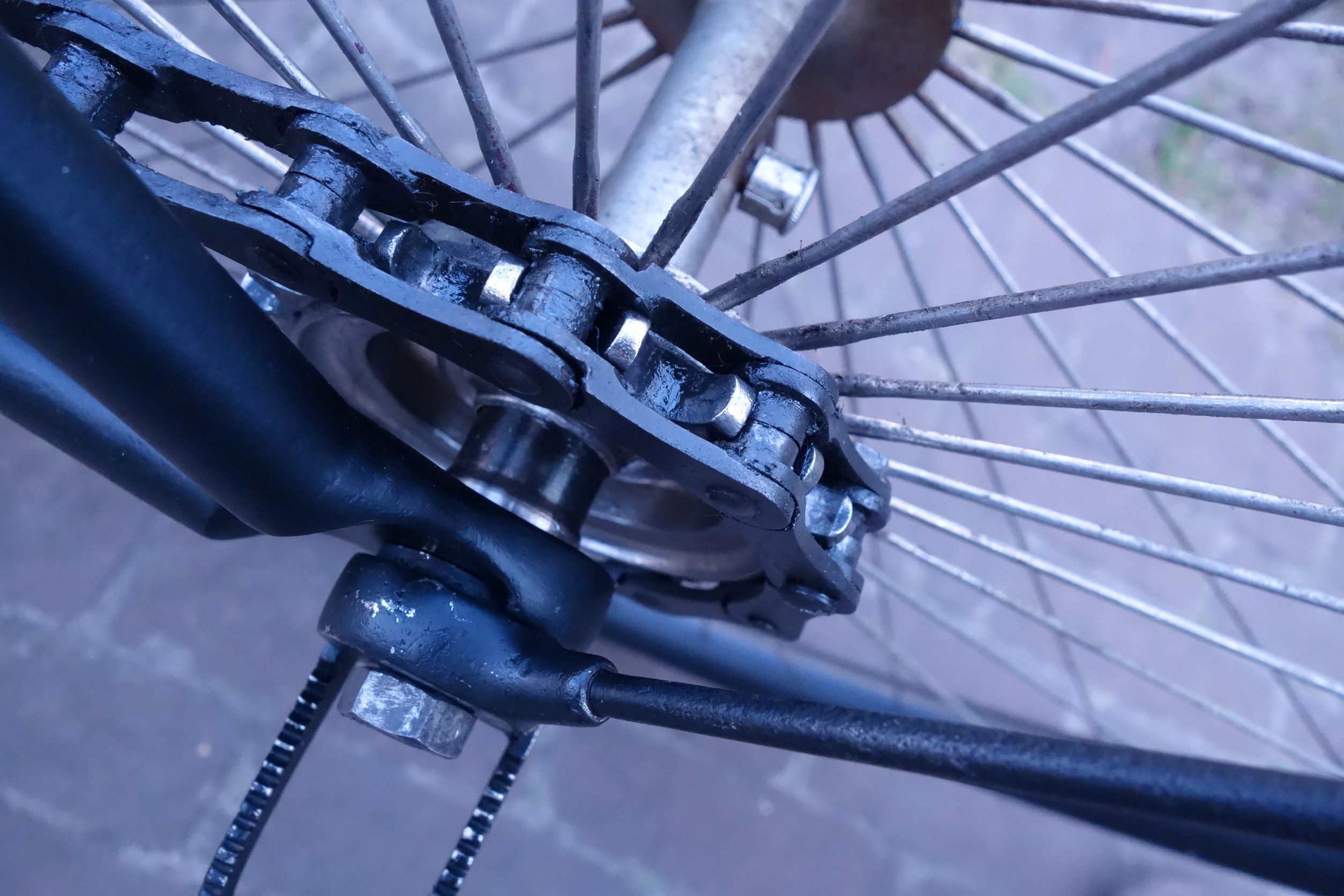 Voordeel is dat bij opstappen via het stepje je broekspijp rechts niet de ketting kan raken als je je rechter been over de fiets gooit.