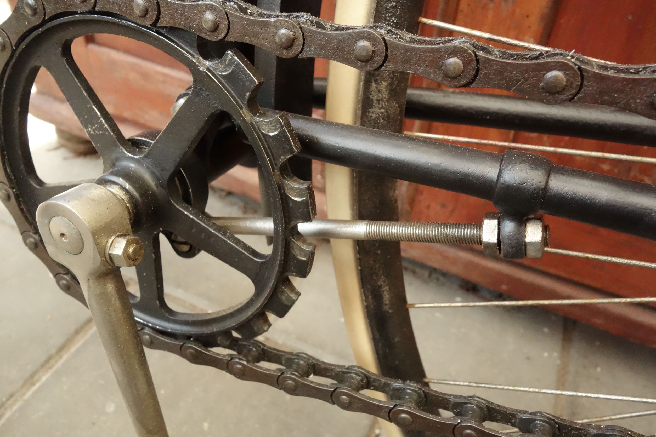Een vierde bewijsstuk vond ik in een catalogus van B.A.Jansen. Daar staat een safety in met een ketting verstelstangetje schuin naar de achtervork.