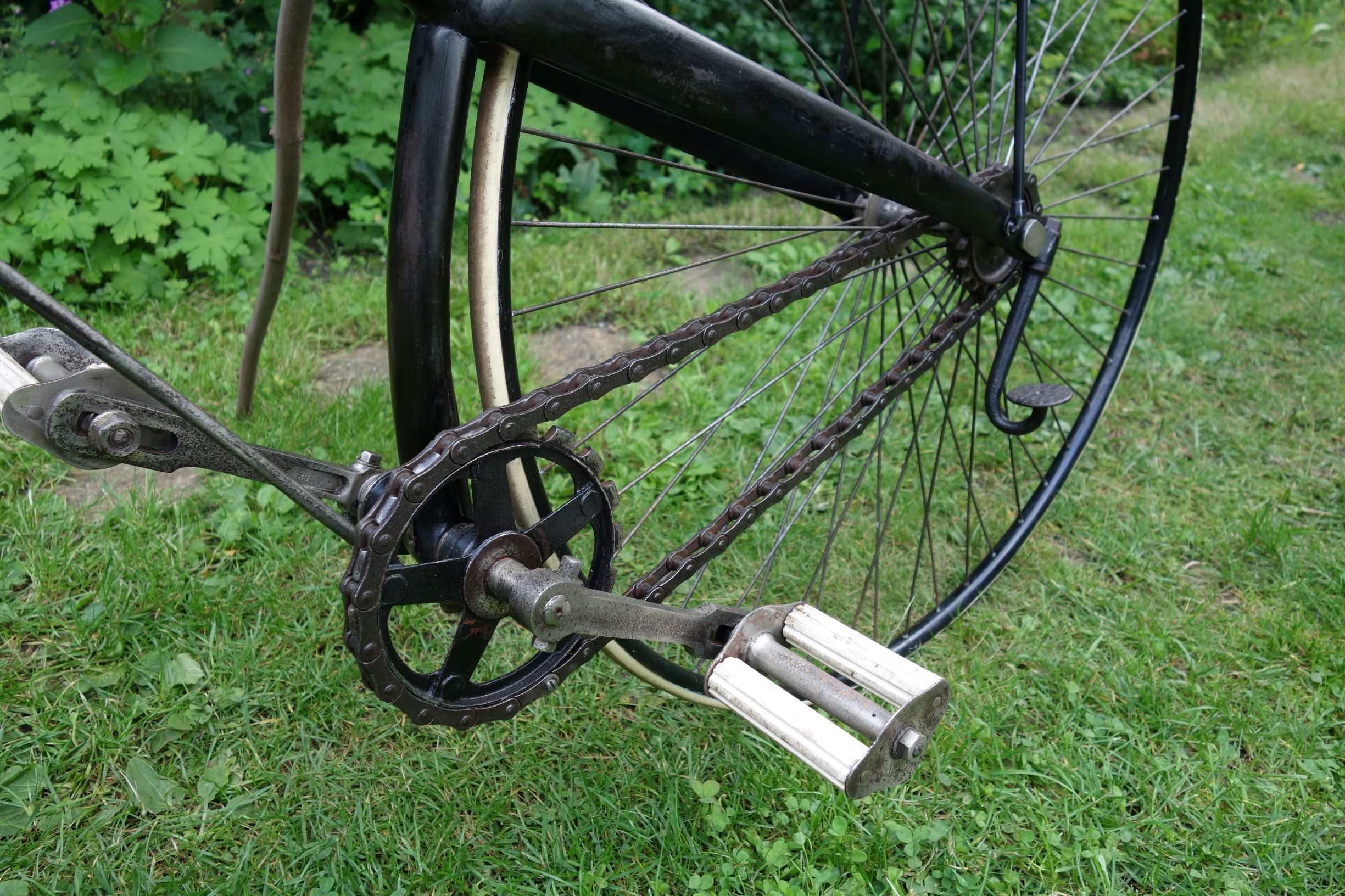 De fiets is voorzien van cuschion tyres wat wel gebruikelijk was in dat jaar (naast de dunne massieve en de eerste luchtbanden).