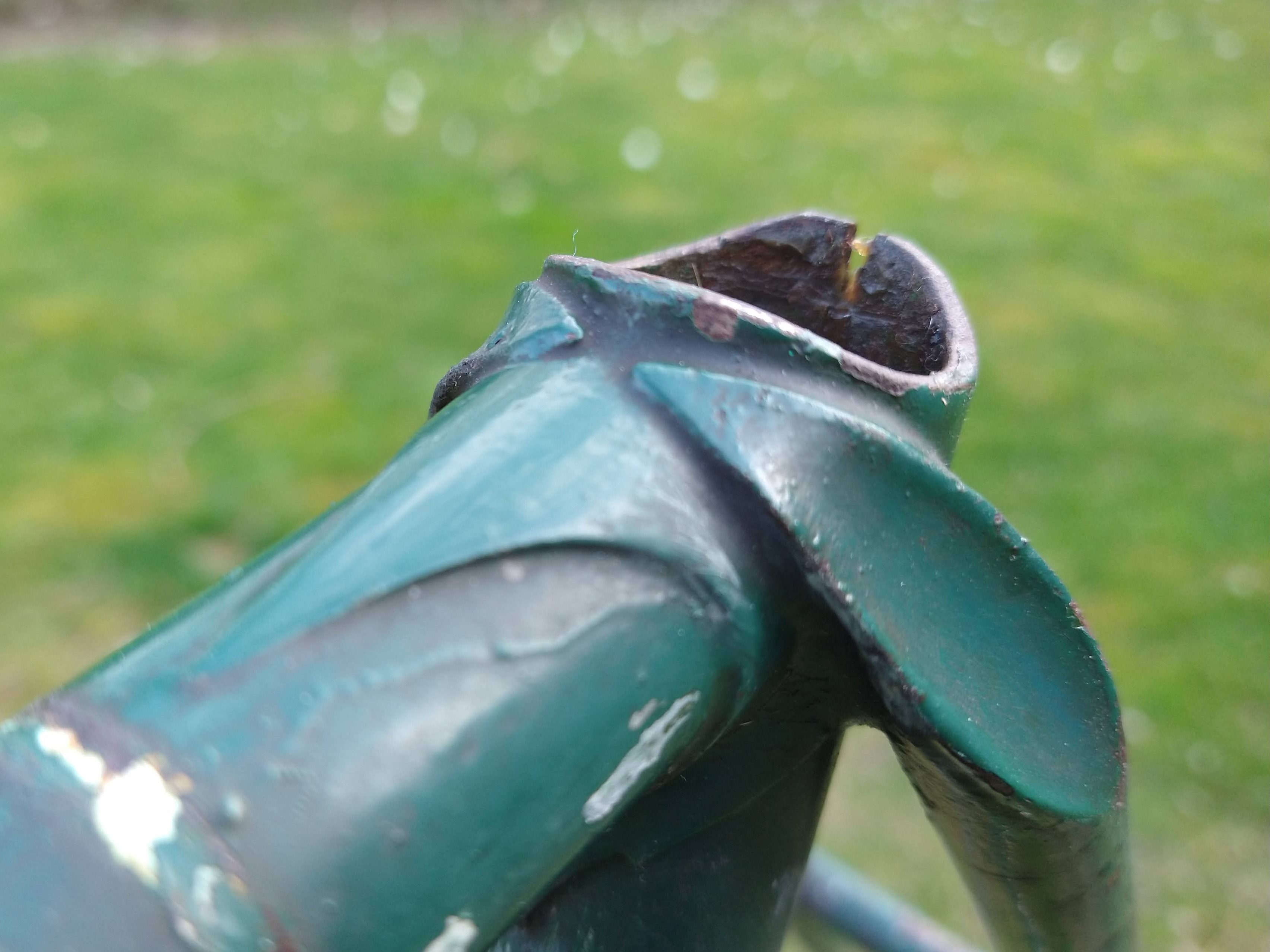 Mijn indruk is dat het een mooi frame moet zijn geweest, maar dat het een behoorlijk zwaar leven achter de rug heeft. Een paar dingen die ik inmiddels heb ontdekt: