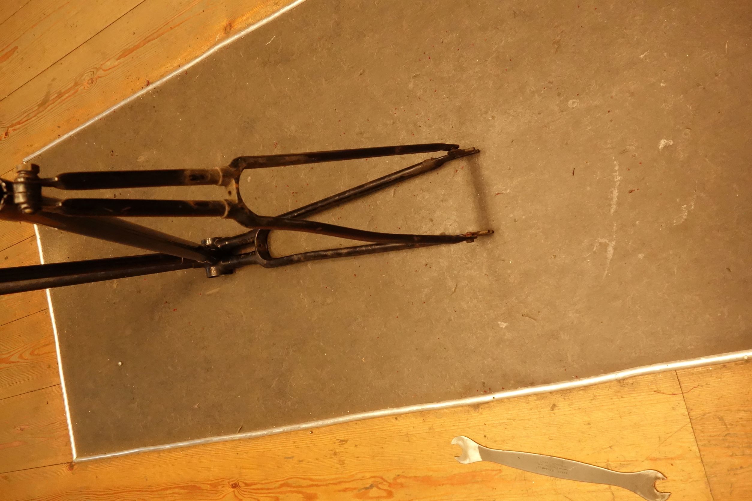 Bij deze Gazelle heeft men eens geprobeerd de achterband te vervangen zonder het wiel er uit te nemen. De staande en liggende achtervork waren zwaar verbogen. IK kon het weer goed terug buigen maar het is voor de balans van het fietsen funest natuurlijk.