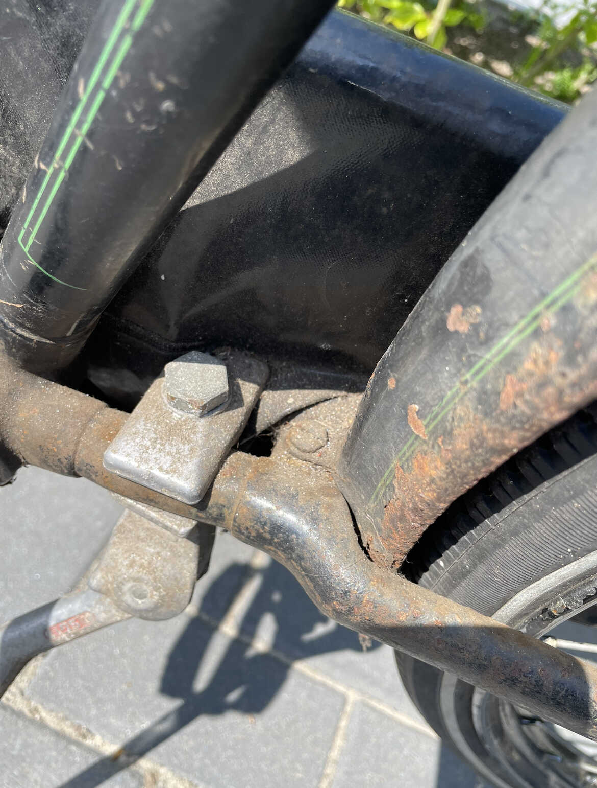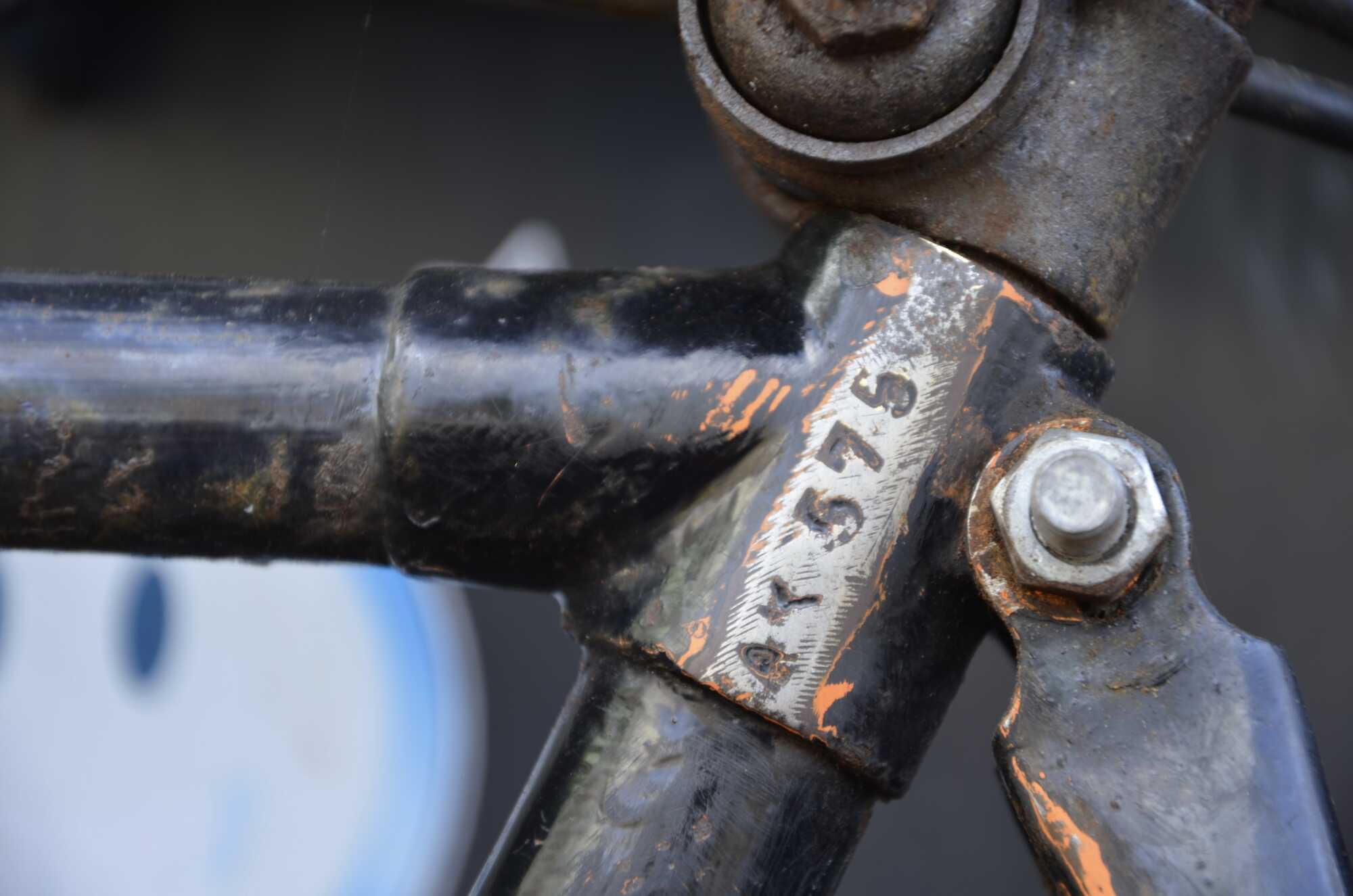 De werkelijke framemaat van 55 cm strookt echter niet met wat er op de lug is ingeslagen, namelijk ‘BB 65’. Mijn theorie is dat de fiets ergens jaren ‘50 terug geweest is naar de fabriek en toen is verlaagd. Mogelijk ten behoeve van een fiets met hulpmotor. Een stevig BB frame heeft dan natuurlijk zo zijn voordelen.