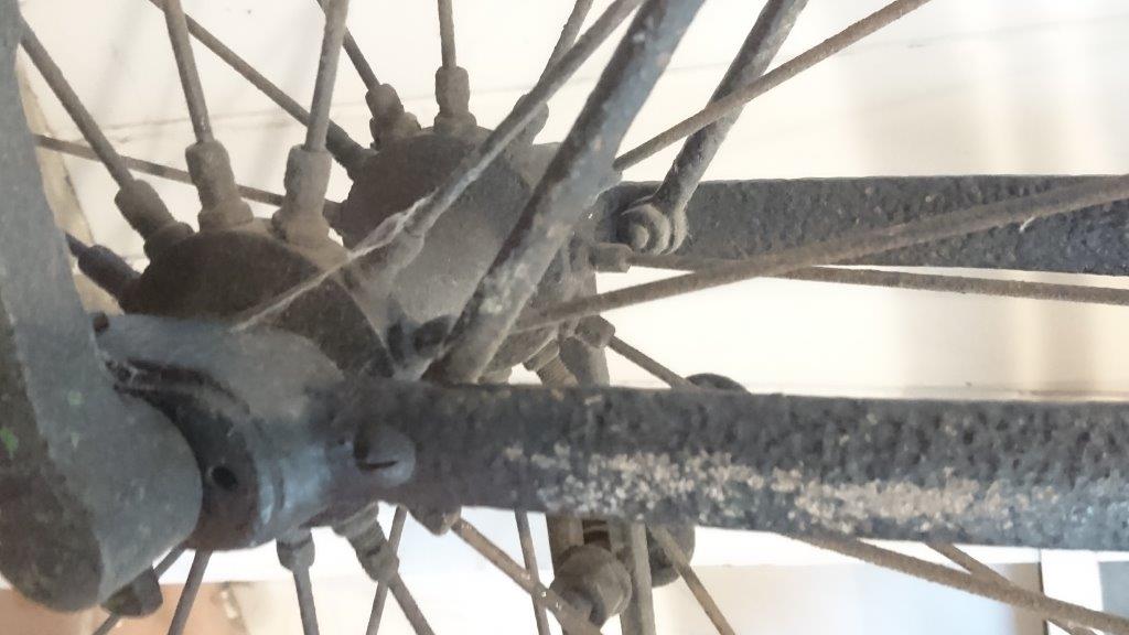 Er zijn erg weinig van die héle vroege fietsen over. CMC was destijds de grootste fietsenfabriek ter wereld: er zijn 2 fietsen bekend van het model 1871-72, één van 1873, één van 1874 (deze dus) en dan een viertal van 1875. Daarna lopen de aantallen snel op.