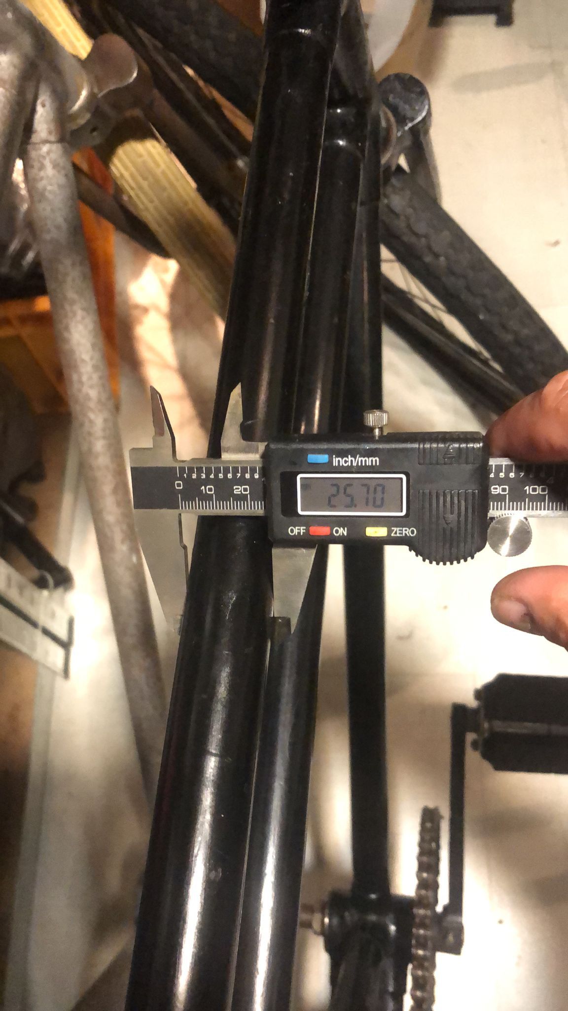 Een laatste detail dat opvalt is dat de horizontale buizen dunner zijn dan gebruikelijk voor een (latere) transportfiets: