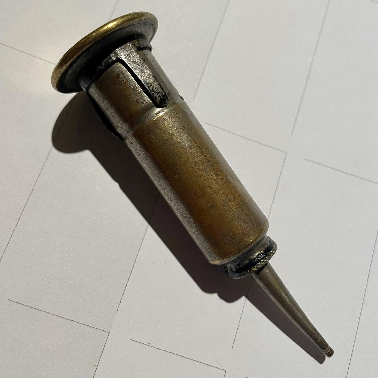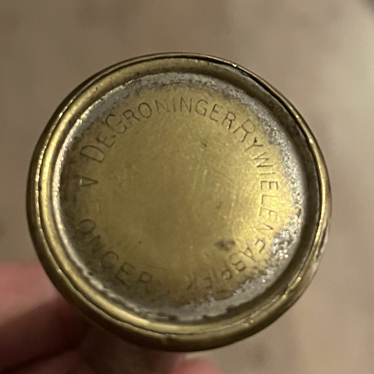 Interessante vondst vandaag. Een oliespuitje met daarop de tekst ‘De Groninger Rywielenfabriek A. Fongers’.