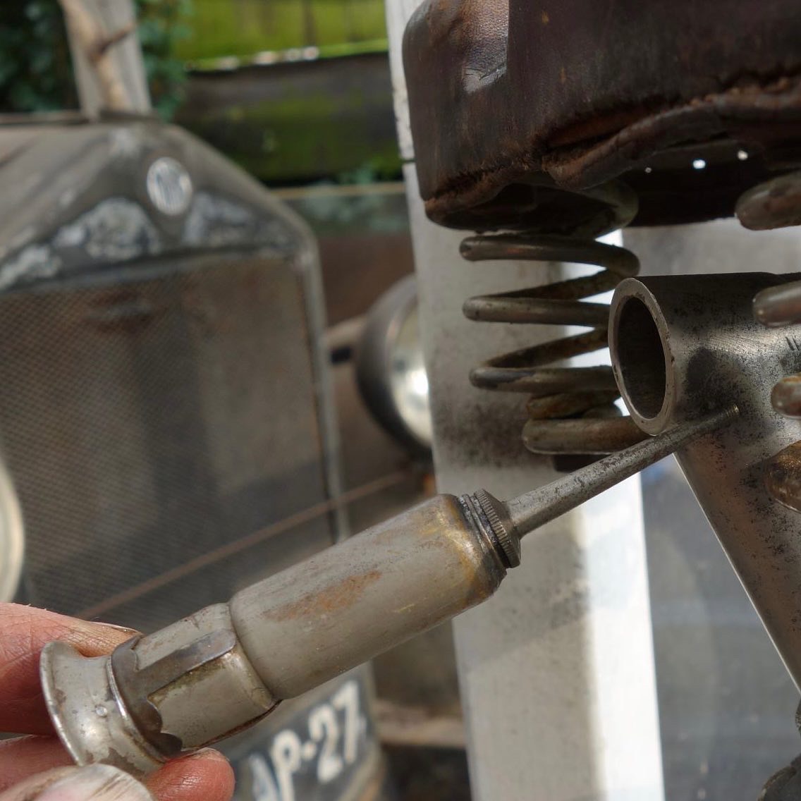 Deze oliespuitjes pasten achterin een haakse zadelpen en werden in de begin jaren van de 20ste eeuw toegepast op Fongers rijwielen.