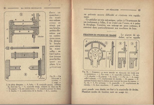 aansluitend bij het bericht van Balhoofd (every cyclist's handbook). Ik heb twee (franstalige) boekjes (samen toch 360 blz) "Ma petite bicyclette", deel "sa pratique" (over rijden en onderhoud enz) en "son anatomie" (over de techniek van de toenmalige fiets), uitgegeven in 1925. Aangehecht enkele scans in lage resolutie (niet erg leesbaar).