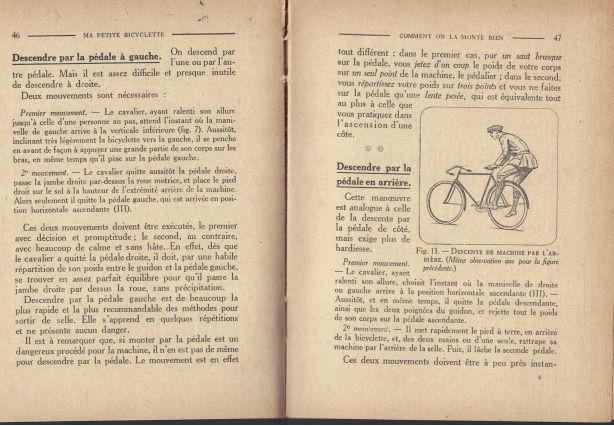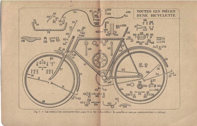 aansluitend bij het bericht van Balhoofd (every cyclist's handbook). Ik heb twee (franstalige) boekjes (samen toch 360 blz) "Ma petite bicyclette", deel "sa pratique" (over rijden en onderhoud enz) en "son anatomie" (over de techniek van de toenmalige fiets), uitgegeven in 1925. Aangehecht enkele scans in lage resolutie (niet erg leesbaar).