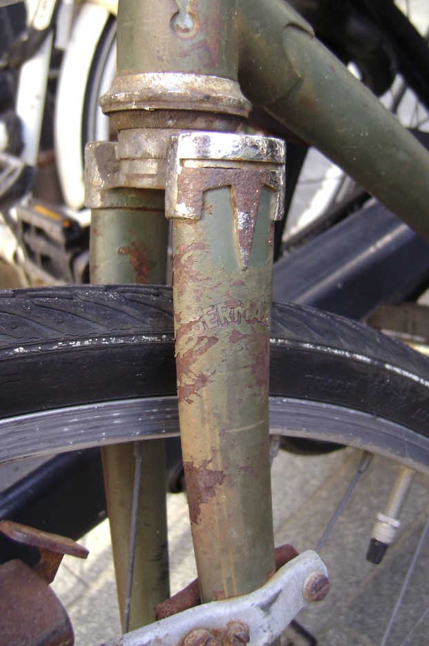Ik fietste door Rotterdam toen mijn oog werd getrokken door een verchroomde vorkkroon op een roestig fietsje. Niet iets wat je alle dagen tegenkomt in NL, dus toch maar eens gaan kijken.