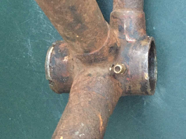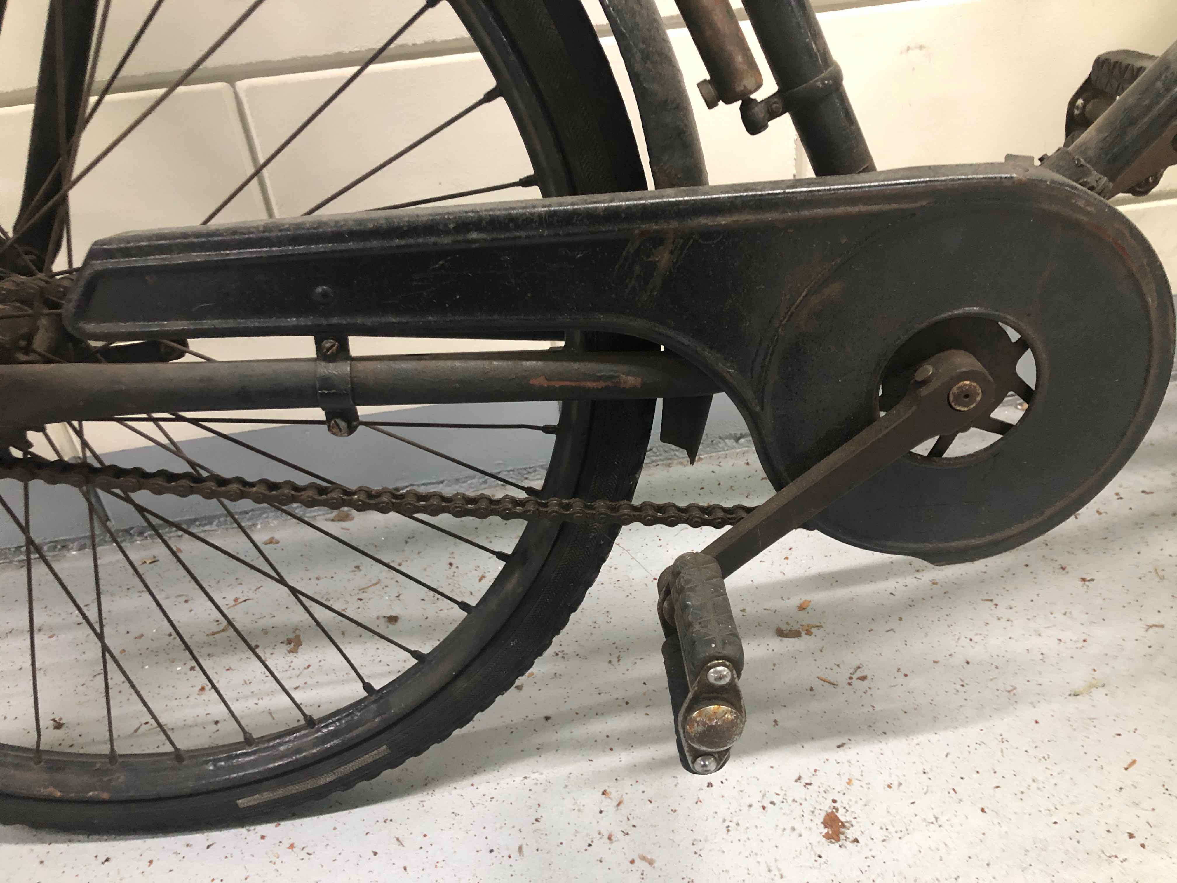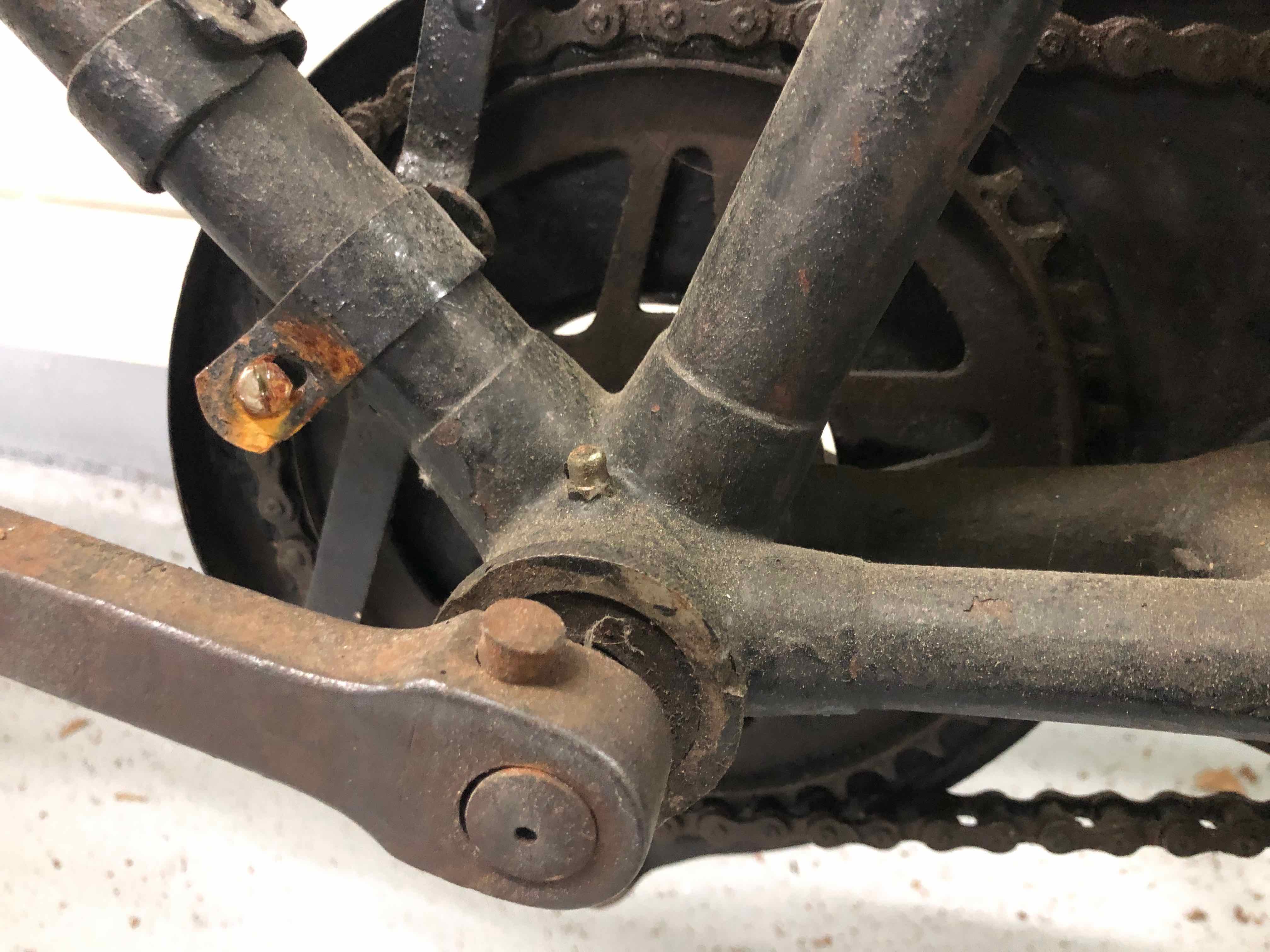 Verder heb ik nog gespeeld met de gedachte dat de fiets misschien bedoeld was als dienstfiets omdat er een BSA trapas ingebouwd is en ook dat de trapas erg dik is voor het type.