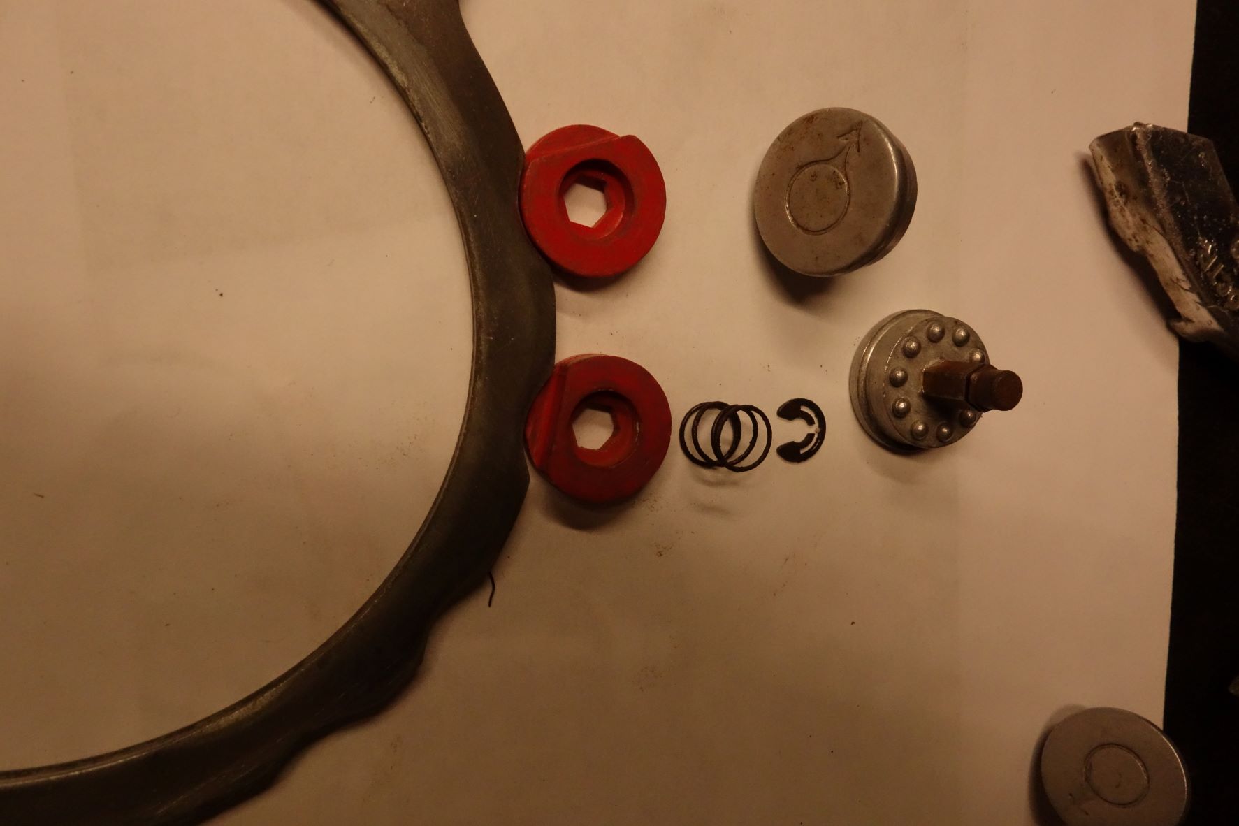 Aan ieder wieltje zit een plat vlak dat de beugel vrij geeft. De asjes van de selectie knoppen zijn zeskantig en de rode schijfjes