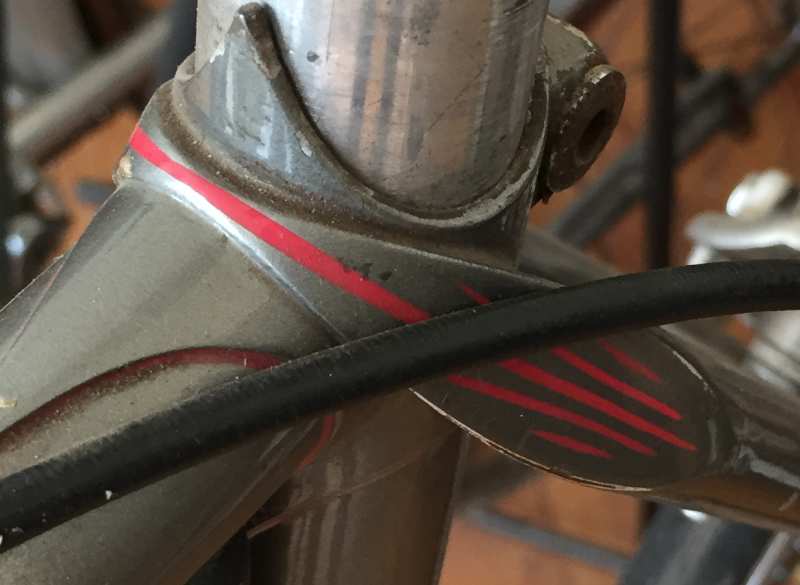 Heb vandaag de fiets opgehaald, inclusief de aankoopbon dd 1976. Fiets is wat stoffig, maar verder rijklaar. Bijgaand foto van de fiets, van de wrap around aanhechting staande achtervork en van de "fameuze" bell crank tbv de 5 speed SA naaf