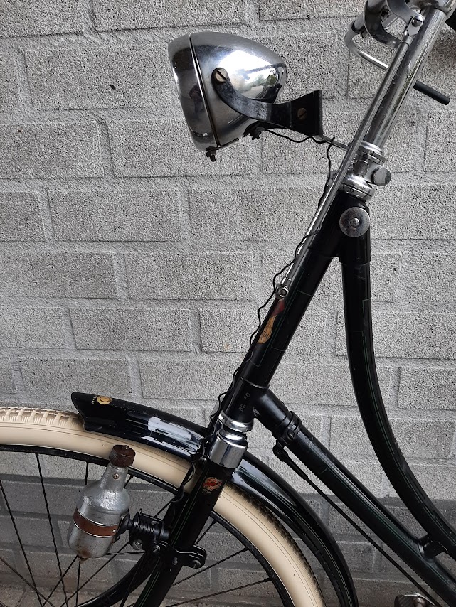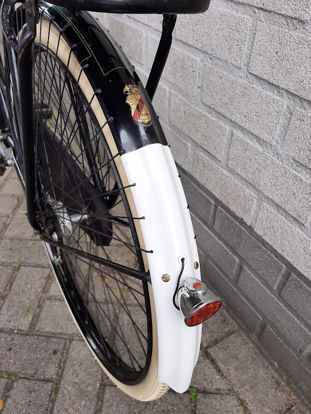 Paar bijzonderheden: fiets is van het 1e soort C in uitrusting 9 (met trommels en gelakte velgen), aanschafprijs 80 gulden (waarschijnlijk een paar gulden meer door het gezondheidszadel dat er niet standaard op zat en de bijgeleverde verlichting). Het frame heeft bij Fongers drie jaar in het magazijn gehangen omdat de vraag naar duurdere modellen na 1935 volledig instortte. Uiteindelijk in 1939 afgemonteerd en geleverd (terwijl je toen voor 50 gulden een eenvoudige Fongers had). Niet alles aan de fiets is origineel (kettingkast, jasbeschermers, achterlicht, pedalen), maar als geheel geen verkeerde revival van een 84-jarige dame.