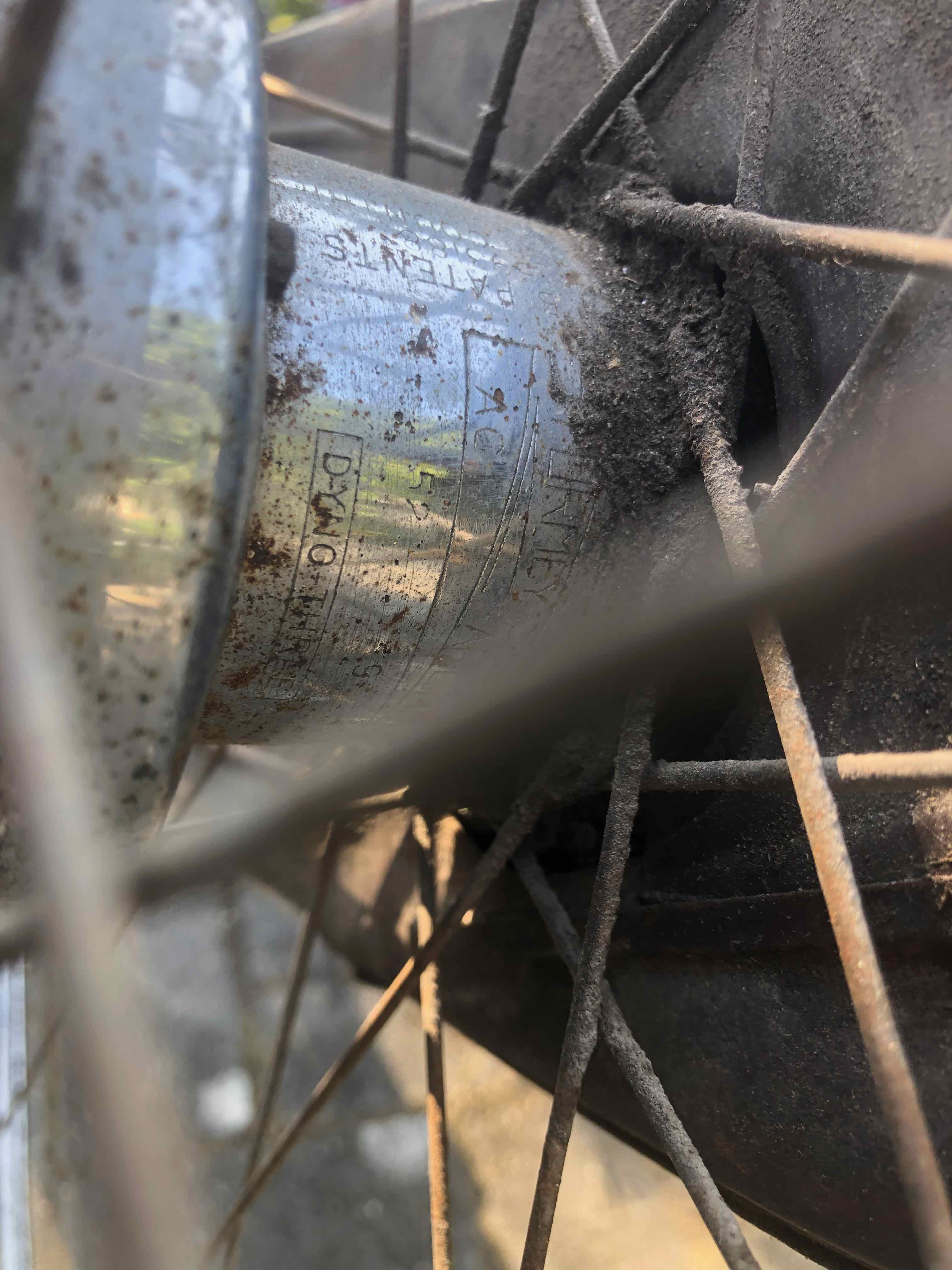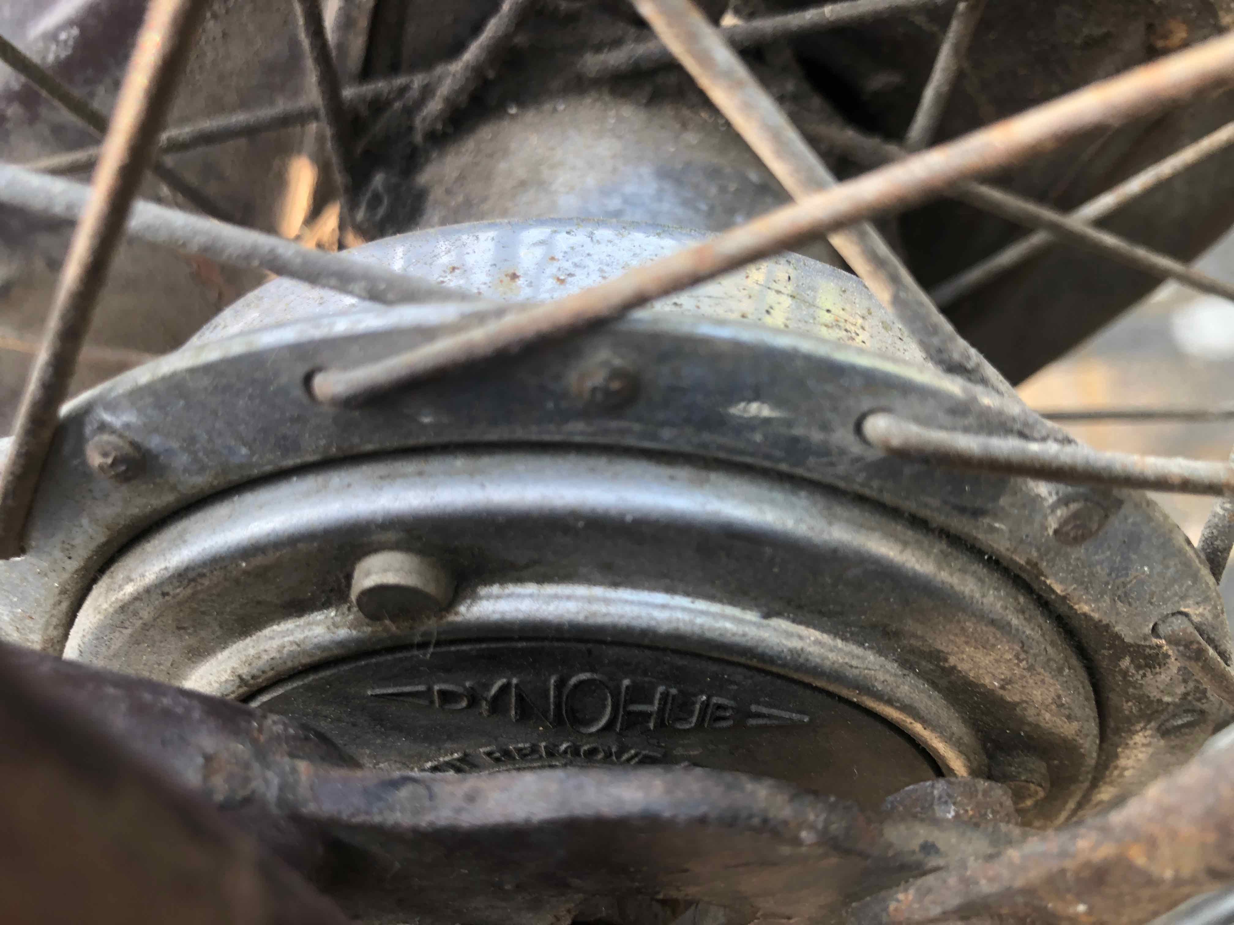 Ook nog de originele Dynohub koplamp met schakelaartje aan de onderkant.