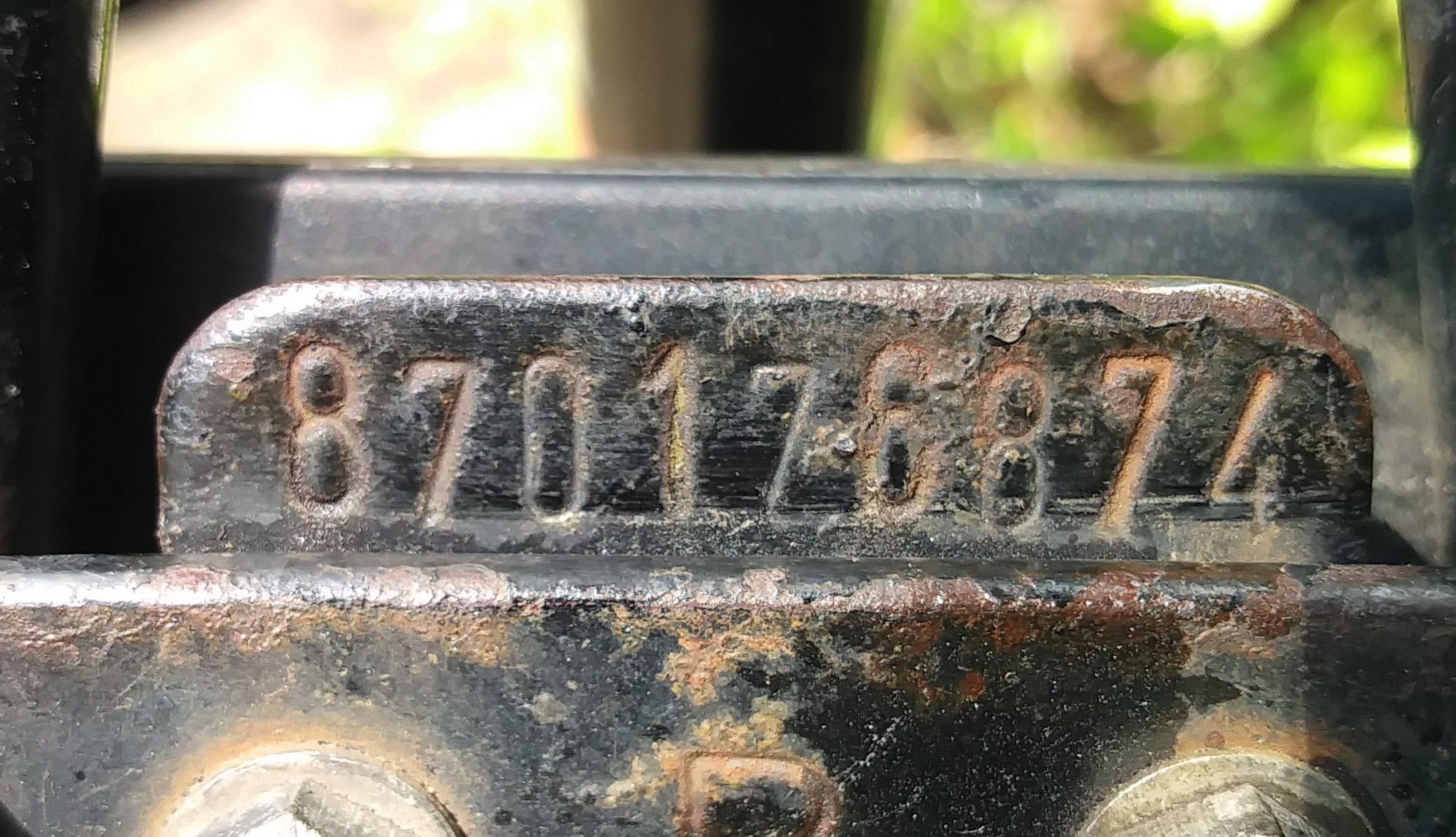 Het framenummer is ingeslagen op de brug van de staande achtervork