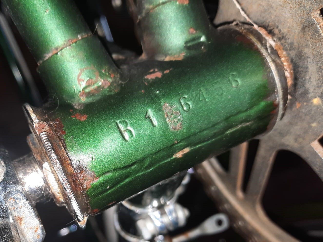 Het framenummer zit gelukkig onder de trapas. Het is maar een nummer dat onleesbaar is.