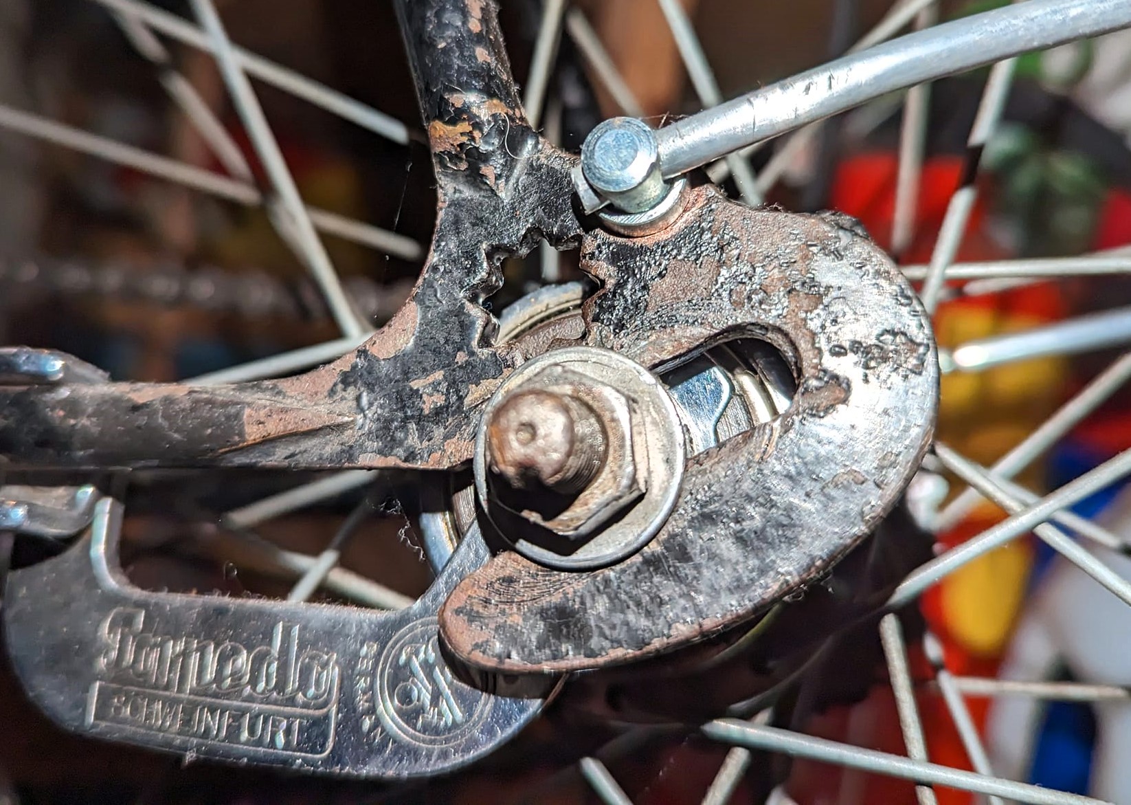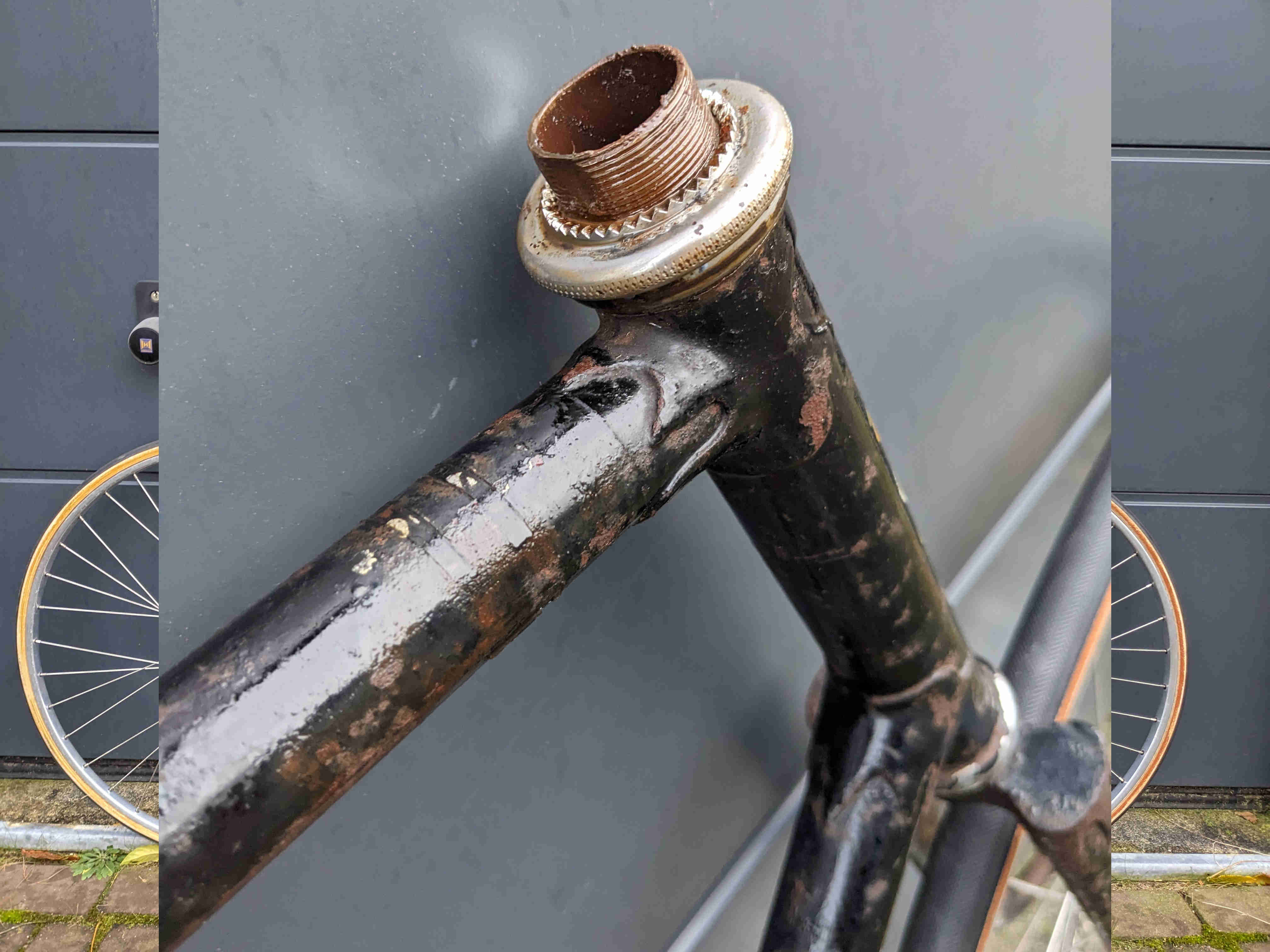 Mijn plan voor de korte termijn is om de roest te verwijderen. Aan de binnenkant van de buizen zit geen roest. Er zat een Bayliss-Wiley trapas in.