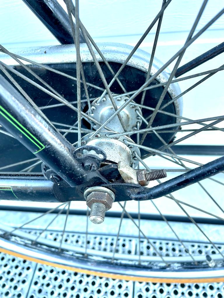 Wat ook hielp bij de aanschaf is dat er een jaren ‘20 Fongers dameszadel en een origineel Fongers zadeltasje opzaten. Deze items waren vernikkeld en pasten eigenlijk niet goed bij de fiets die overduidelijk een revisie heeft ondergaan waarbij alles nieuw in de lak is gezet en verchroomd. De fiets is een plaatje!