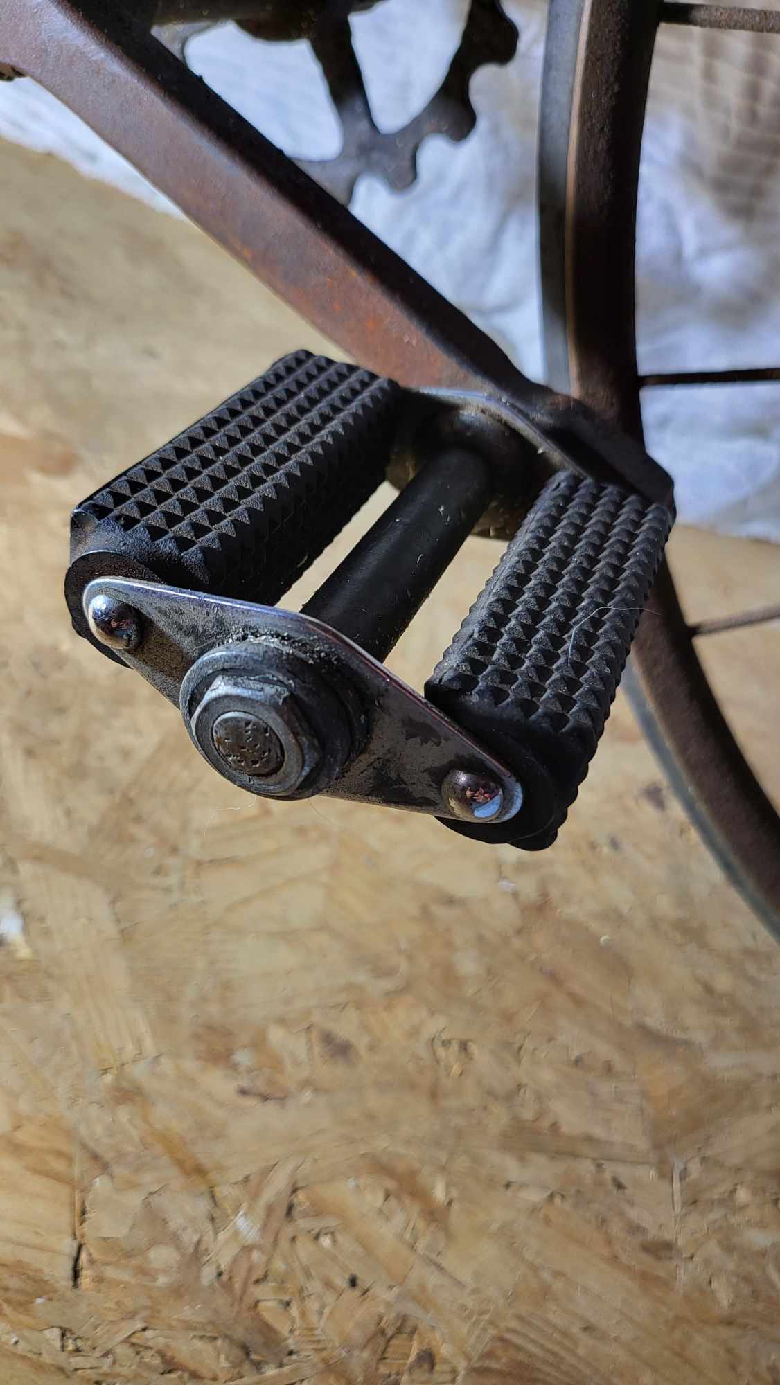 En het midden van iedere tand tot de volgende is 25,4 mm Nergens anders op het frame kan ik nog iets van opschriften vinden.... Wat me wel opvalt is dat de pedalen van de fiets wss niet origineel zijn. Op het pedaal staan deze nummers en symbool 32/1231/1006 In de velg van het voorwiel zitten er om de zoveel spaken een gat waarom zou dit zijn? (Is niet zo bij achterwiel) Verder nog wat foto's van de fiets. Groeten,