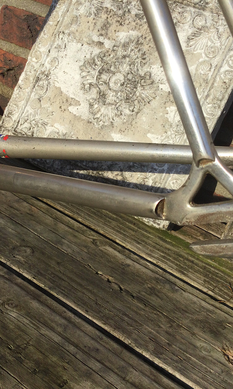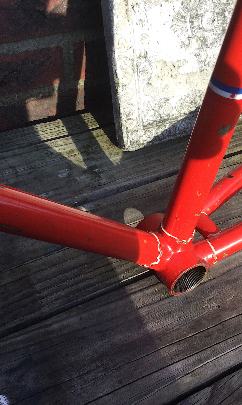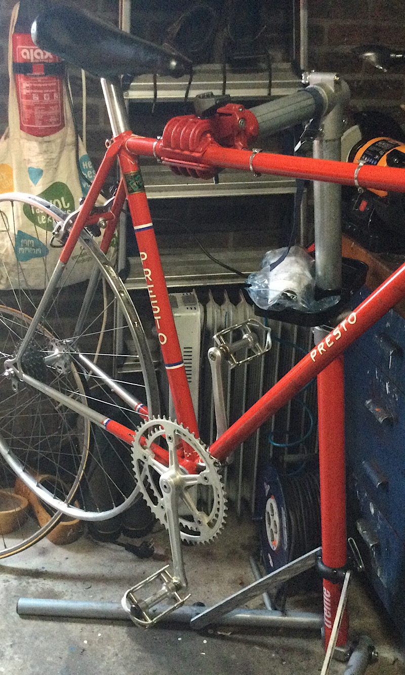 Campagnolo pads , licht Reynolds 531 frame met open bottom bracket.