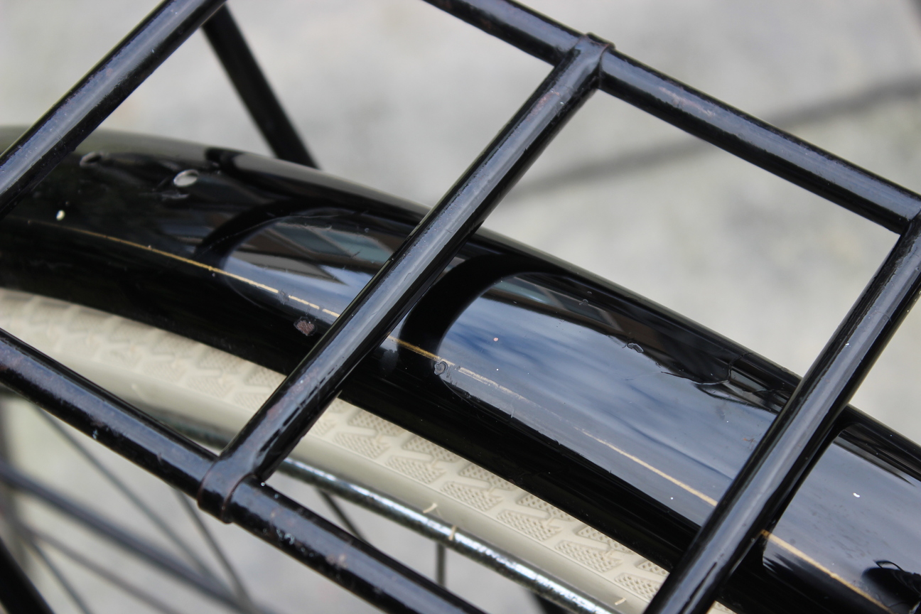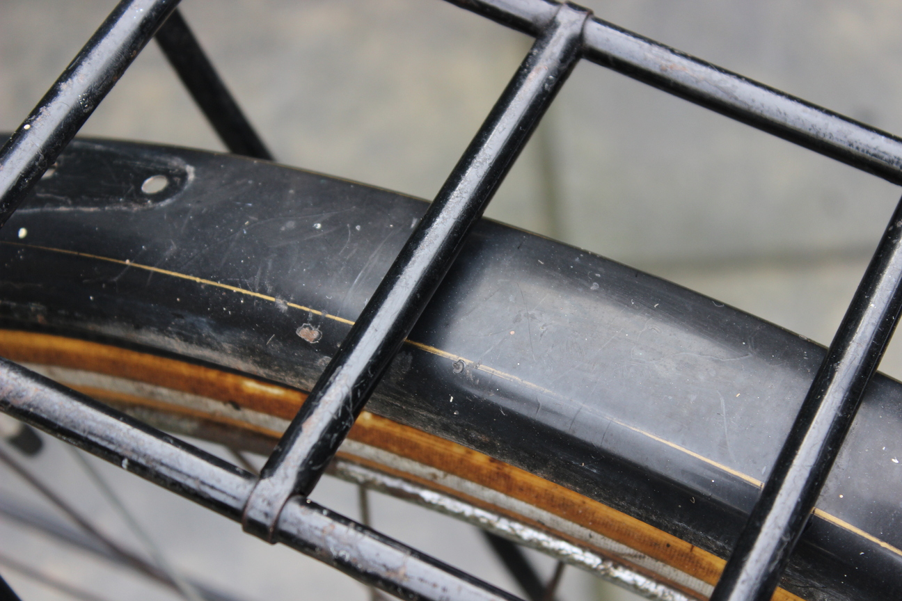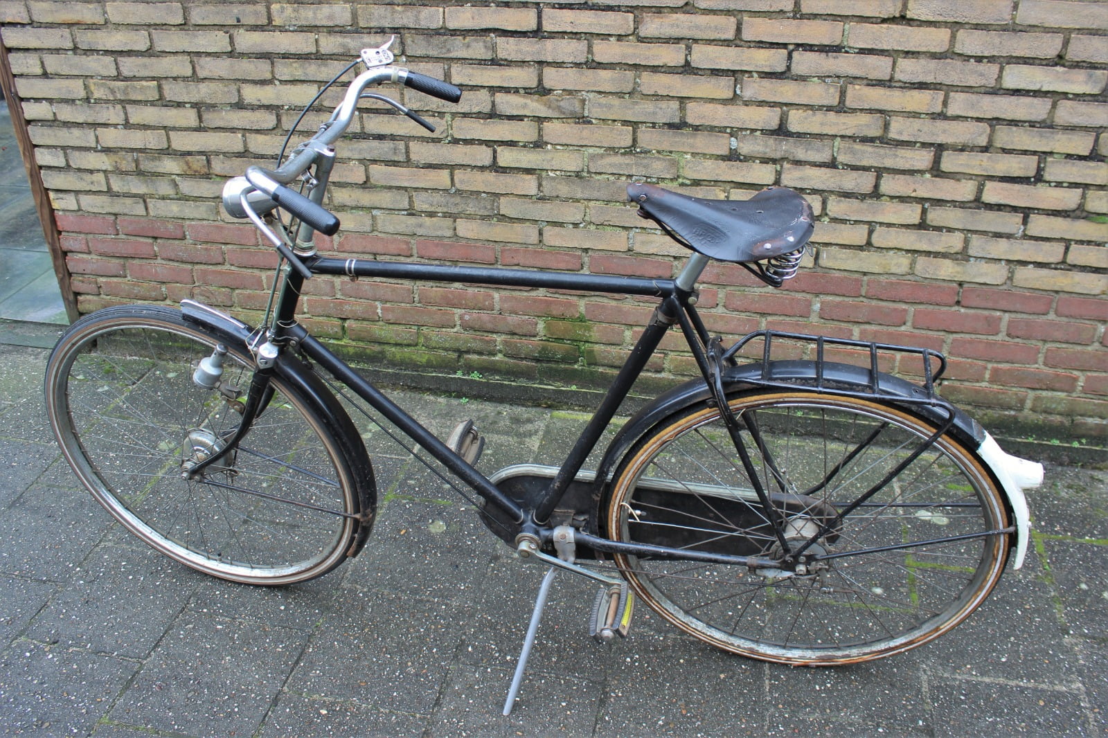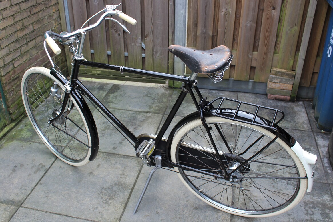 Hij is niet perfect, maar lijkt redelijk origineel. Ik denk dat er nog wel wat moois van te maken is. Als eerste komen er witte banden op en moeten een paar spaken vervangen worden, voor de rest is het voornamelijk poetsen.