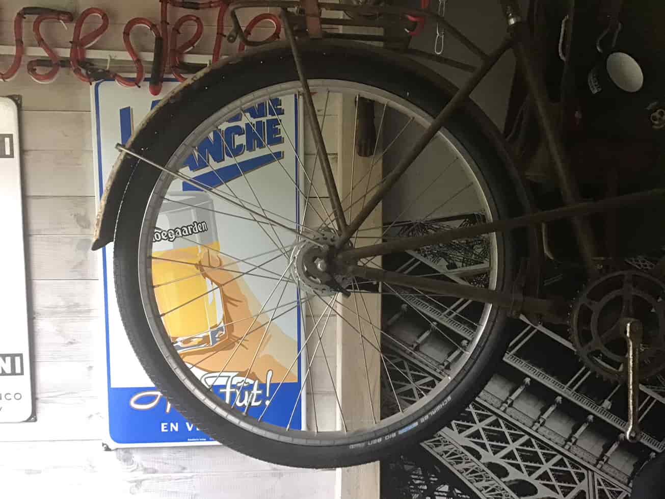 Hierin heb 650B (zo’n beetje de standaard in die tijd in Frankrijk) met Schwalbe Big ben 584 - 50 banden gemonteerd met een Nexus 8speed met rollerbrake (dat is hier vloeken in de kerk) de velgen zijn verchroomd stalen van italchero gekocht bij een Franse bromfiets onderdelen specialist.