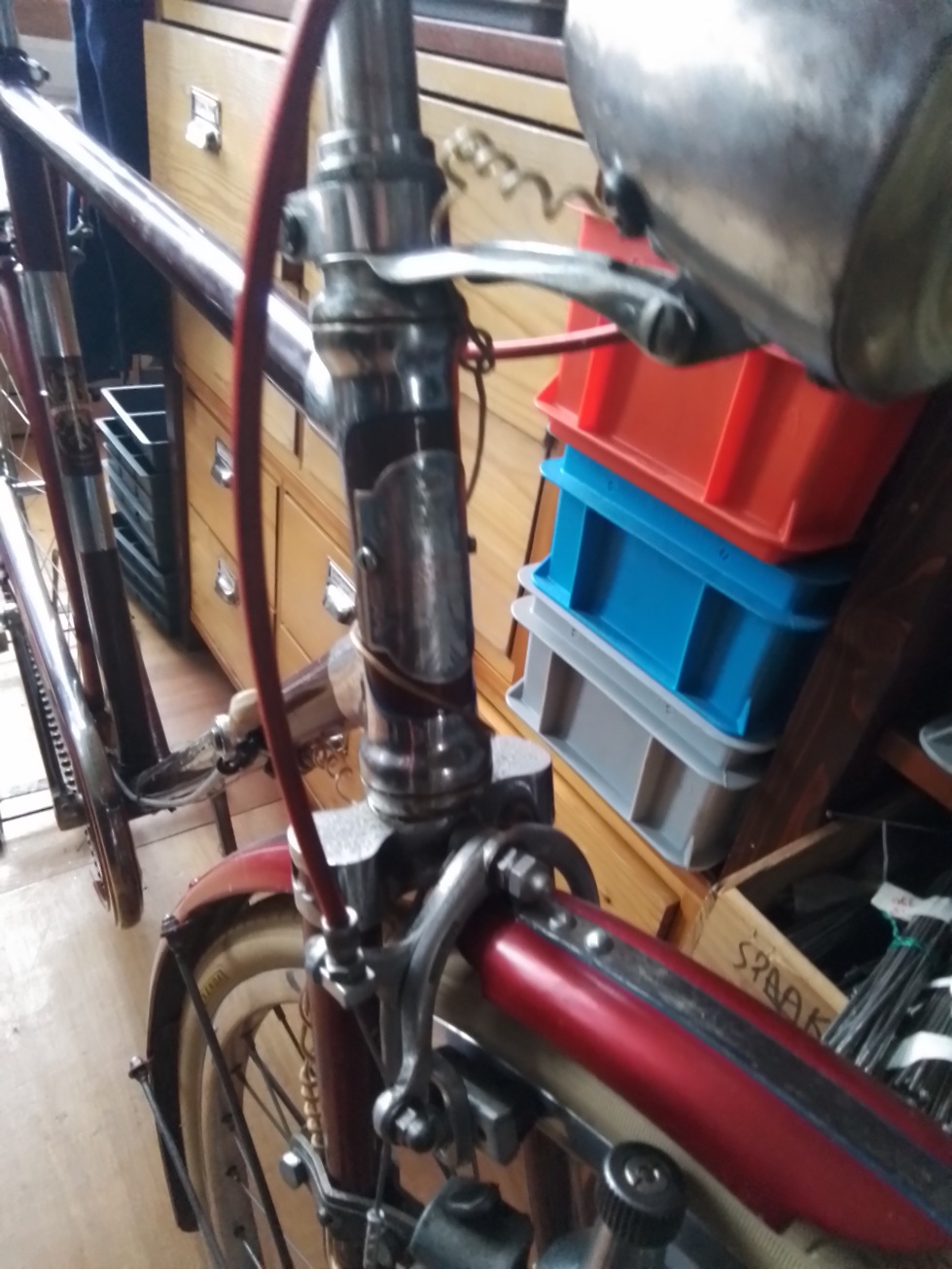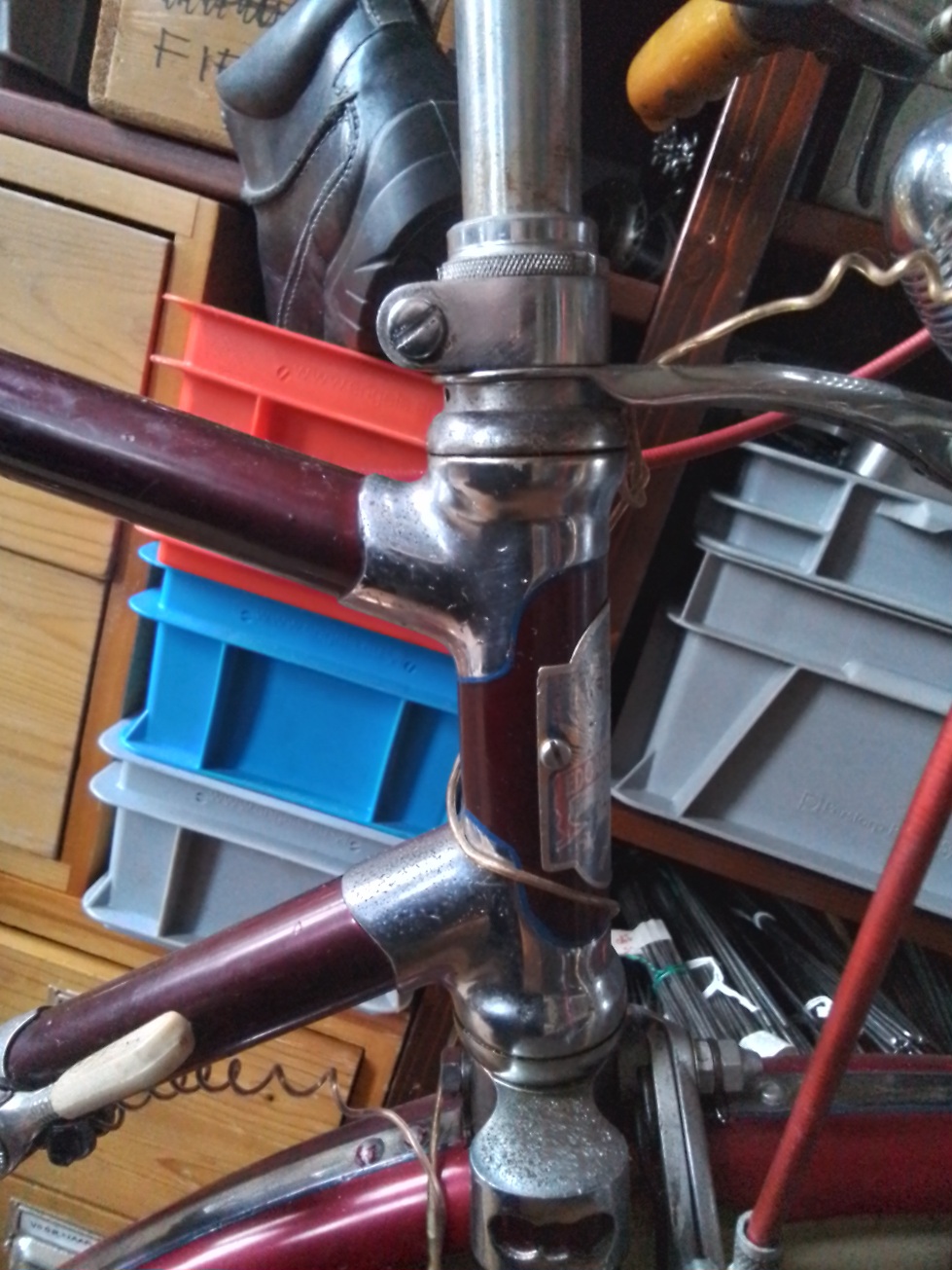 Te gek geintegreerd balhoofd, tof chroomwerk, leuke Bianchi naven, campagnolo sport derailleur, Aprilia verlichting, prachtige spatbordjes, etc...