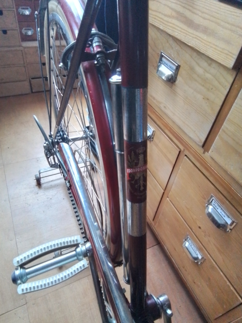 Leuk Itailaans sportfietsje van Edoardo Bianchi. Waarschijnlijk een Lario sport. Maar hoogstwaarschijnlijk ooit overgespoten. Er zit nog wat blauw onder het rood hier en daar...