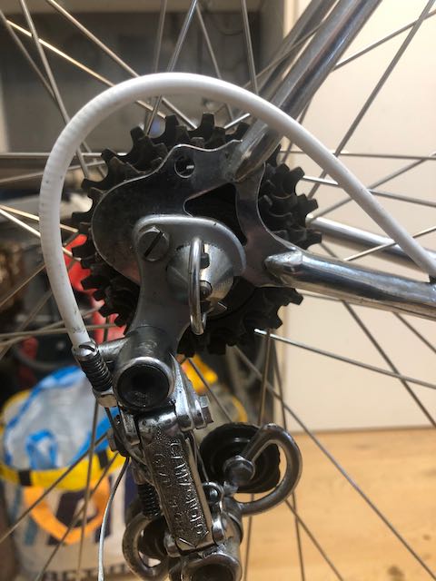 - derailleurs en schifters Campagnolo, achter Gran Sport met stalen wieltjes.