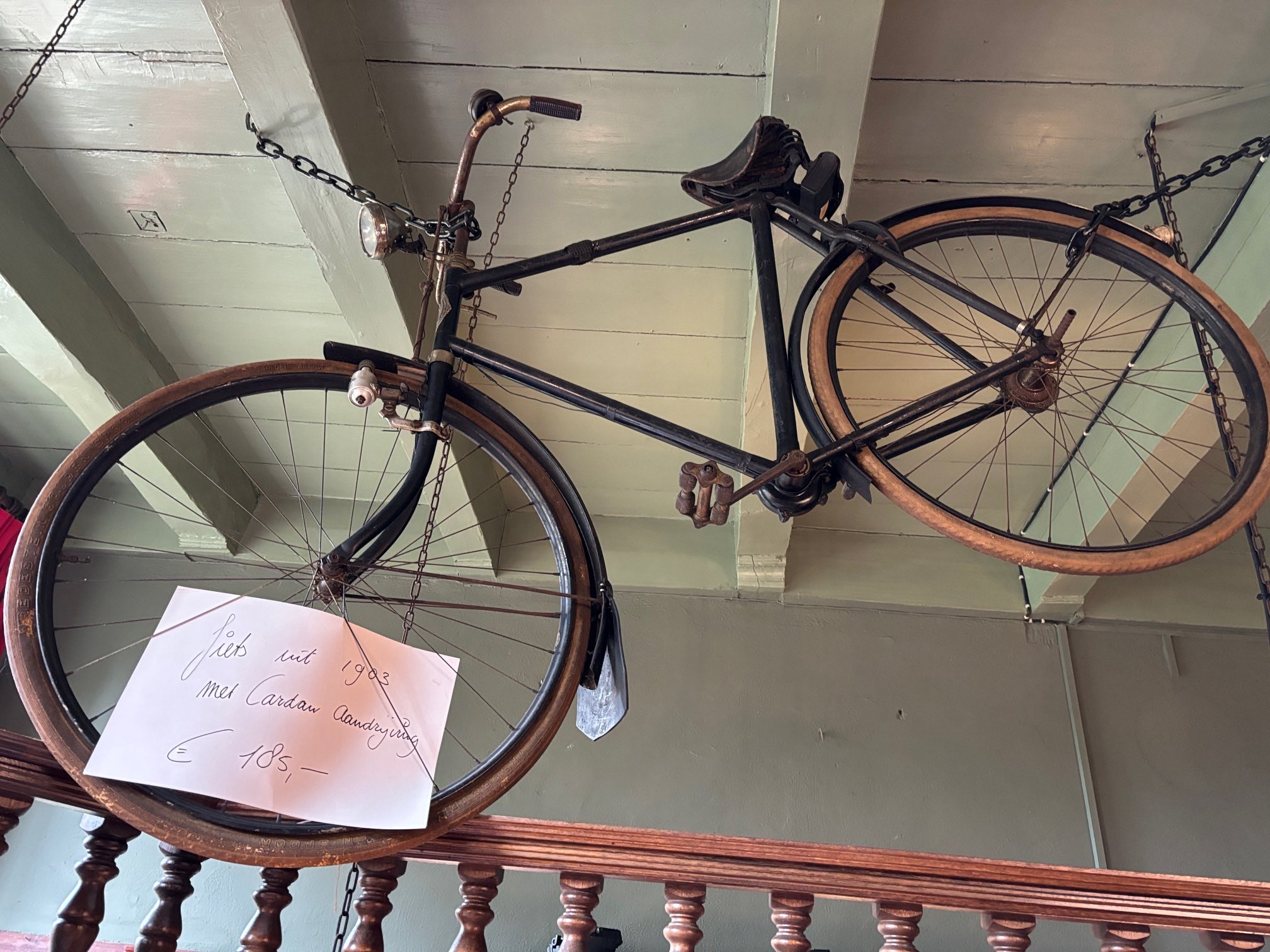 Wat bleek: daar hing een Burgers cardanfiets uit 1903 te koop voor 185 euro . Ik ben meteen in de auto gesprongen en naar Hattem gereden, maar wat ik al verwachtte: de fiets was al verkocht. Te laat dus.