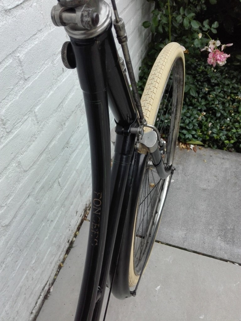 Ik heb de fiets een tijdje terug overgenomen van Joop maar ken de fiets vooral van Antoine uit Maastricht die de fiets aangeboden kreeg bij de verkoop van een keramiek oven. Ik herinner me m`n bezoek aan hem en de betovering die de fiets toen op me had. Zo oud en speciaal.