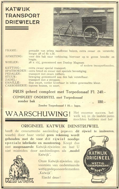 In dit geval is Katwijk het merk, niet het model. Ik weet niet of er plaatselijke varianten waren. Als dat zo was, dan zou dat meer in de bak geweest zijn die erop zat. Er staat mij vaag iets bij dat ik een keer in een folder een model Scheveningse viswagen was tegengekomen. En na even zoeken, jup: http://www.transportfiets.net/2012/03/2 ... erkade-33/ En daar ook een Haagse melkwagen.