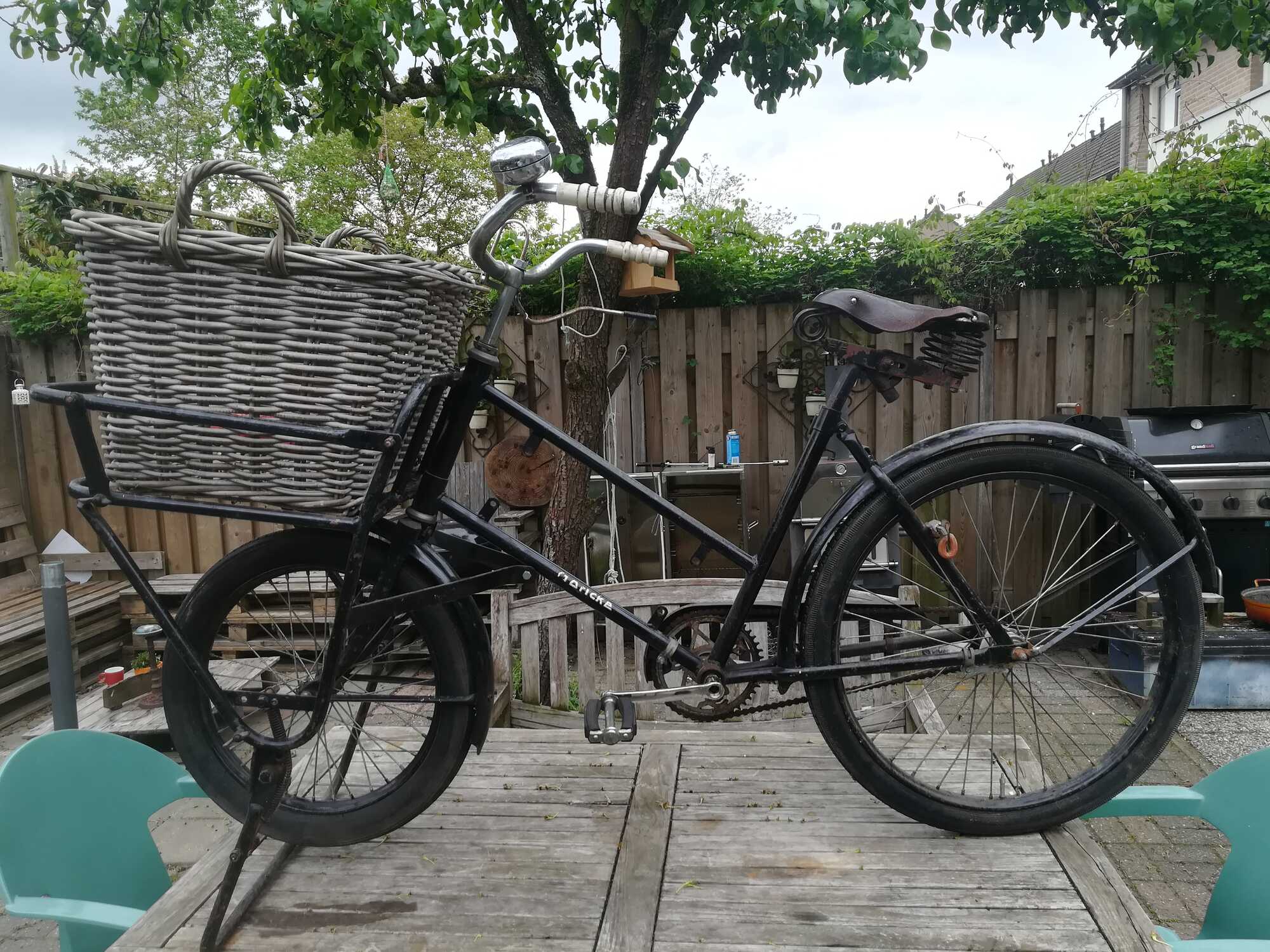 Ik ben Jan en slager van beroep. Jaren geleden heb ik een göricke transporter gekocht en deze gebruikt voor het heen en weer fietsen naar de zaak. Tot de trapper eraf vloog. Toen heeft de fiets als reclame zuil voor de winkel gestaan. De zaak heb ik niet meer, maar de fiets nog wel.