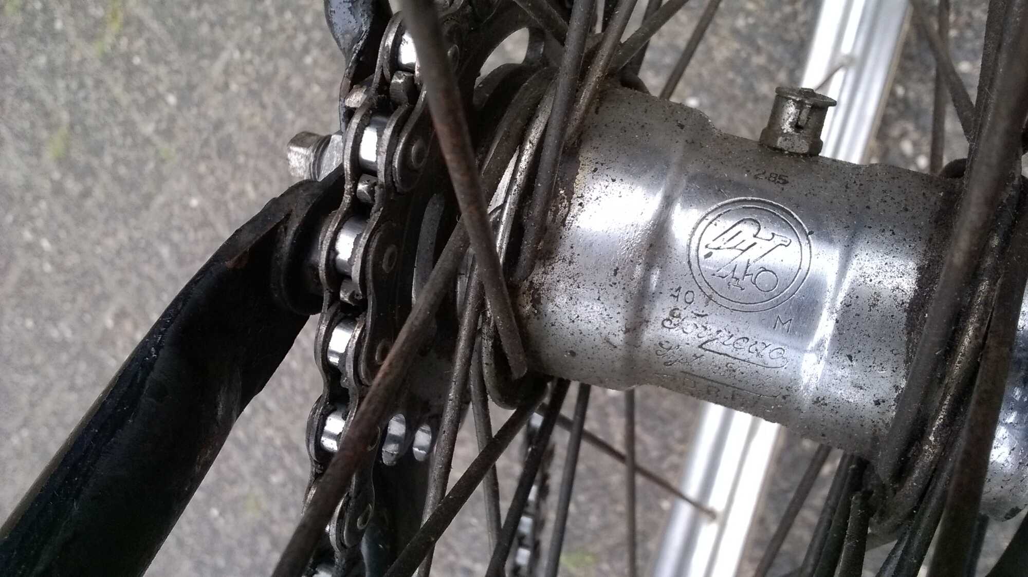 Gevonden: Van 1920 tot 1957 stond op de naaf links onder het logo het jaartal, en rechts een letter, die aangeeft uit welke batch het materiaal voor de huls is gekomen. In 1940 waren ze dus bezig met de 13e staalvoorraad.