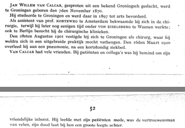 1. Een 'In memoriam' voor Dr. J.W. van Calcar in het Nederlands Tijdschrift voor Geneeskunde