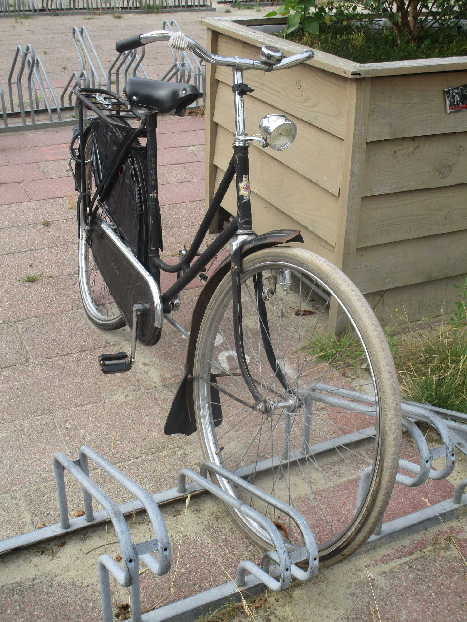 Deze 'goudeerlijke' Union damesfiets, die er nog best aardig uitzag, staat al geruime tijd op een parkeerplaats voor uitgaansgelegenheden.