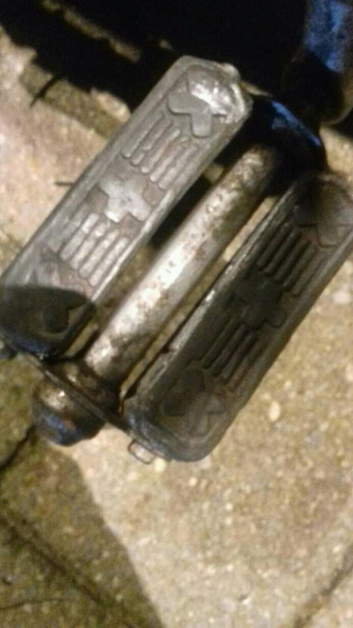 De chranken zijn aan de zijskast afgerond en op de pedalen staan een soort plusjes kan dat kloppen