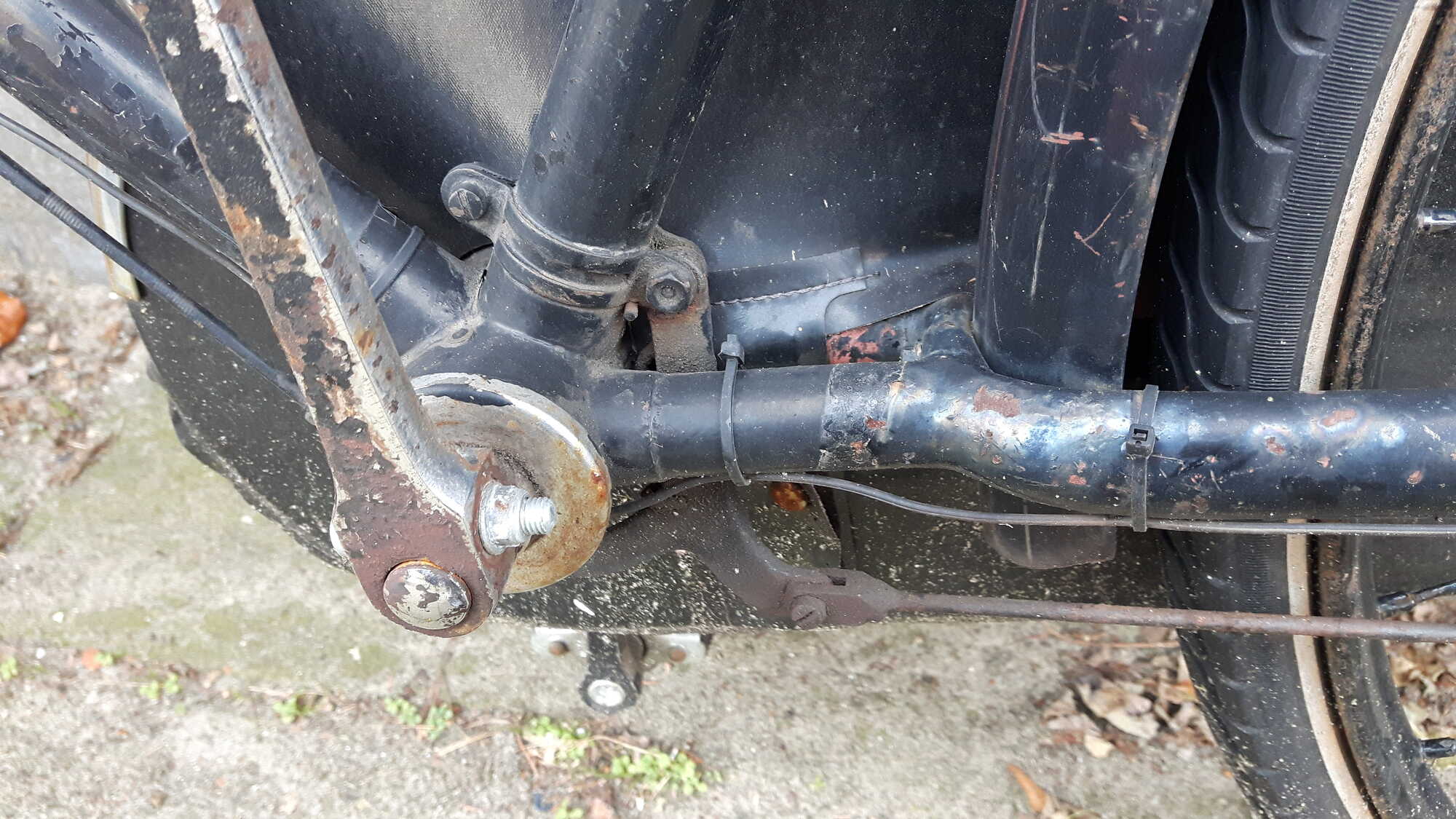 Hij heeft een mooi vernikkeld balhoofdstel, kroonstuk en lamphaak. De patten van de voorvork hebben nog gesloten ogen.