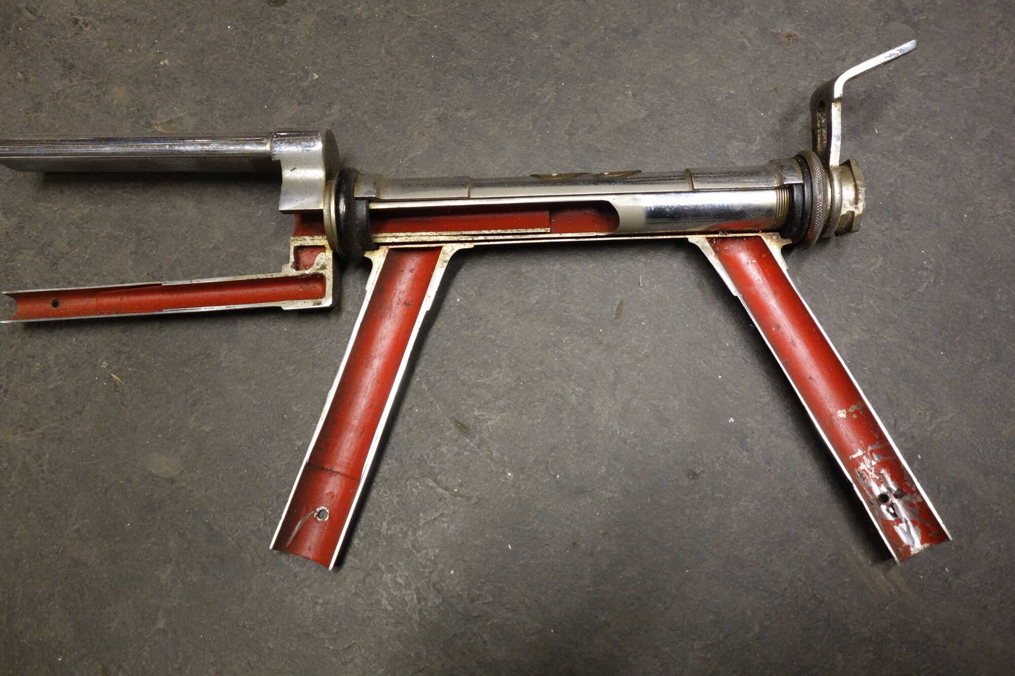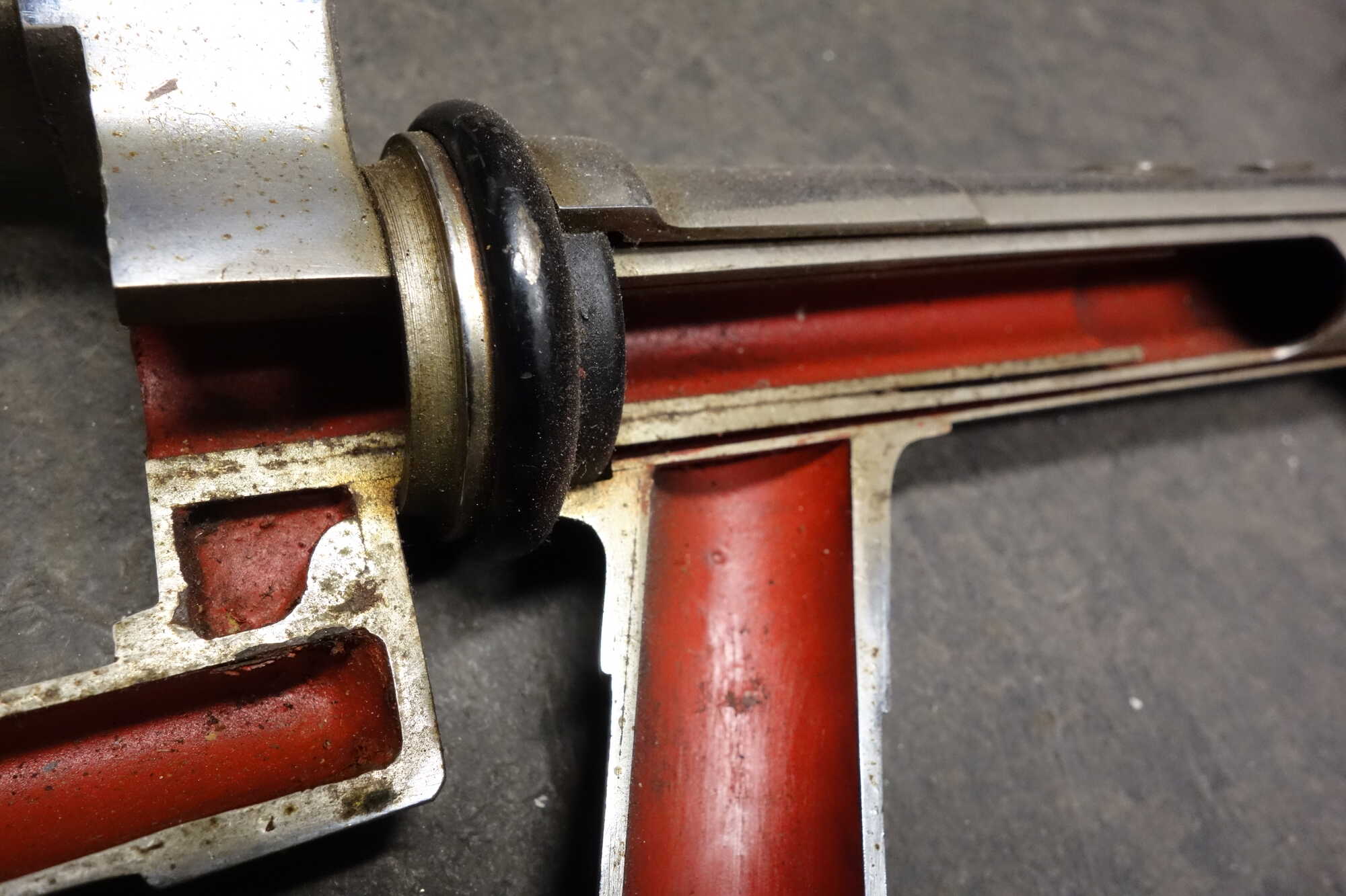 Ik heb na een jaar of 97 de vork maar weer eens gesoldeerd maar moest daartoe wel de veiligheids constructie in de vorkbuis wegboren.
