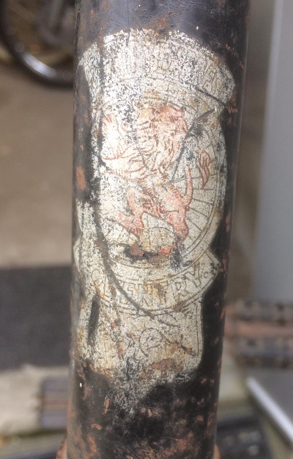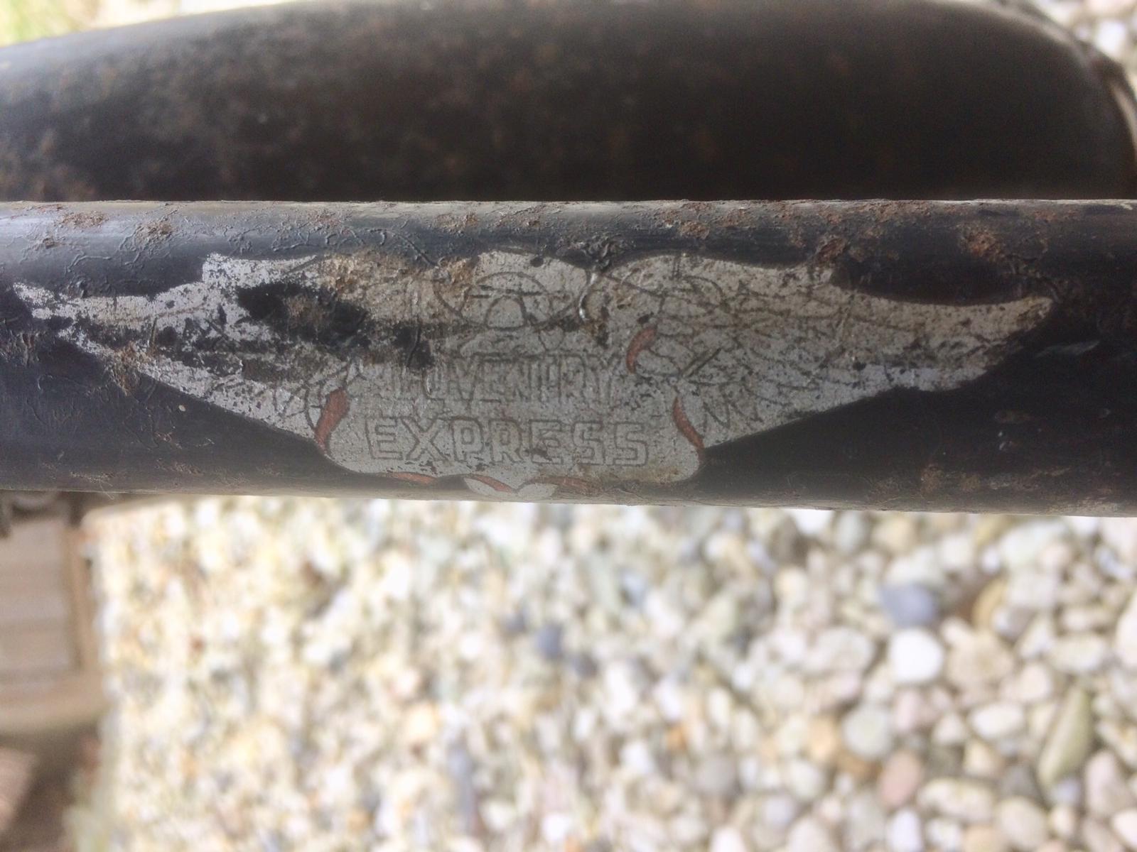 Beste Fietsliefhebbers, gisteren een oude herenfiets gekocht, blijkt een groot samenraapsel te zijn van verschillende onderdelen/en merken, maar frame en voorvork zijn van een merk, graag zou ik hier wat meer over willen weten, op de onderzijde van de balhoofdtransfer staat Coventry, boven de tekst, een afbeelding van een rode leeuw... de rest is onleesbaar, op een andere buis staat Coventry Express, wie kan er wellicht wat meer vertellen over dit merk....Groeten Jeroen...