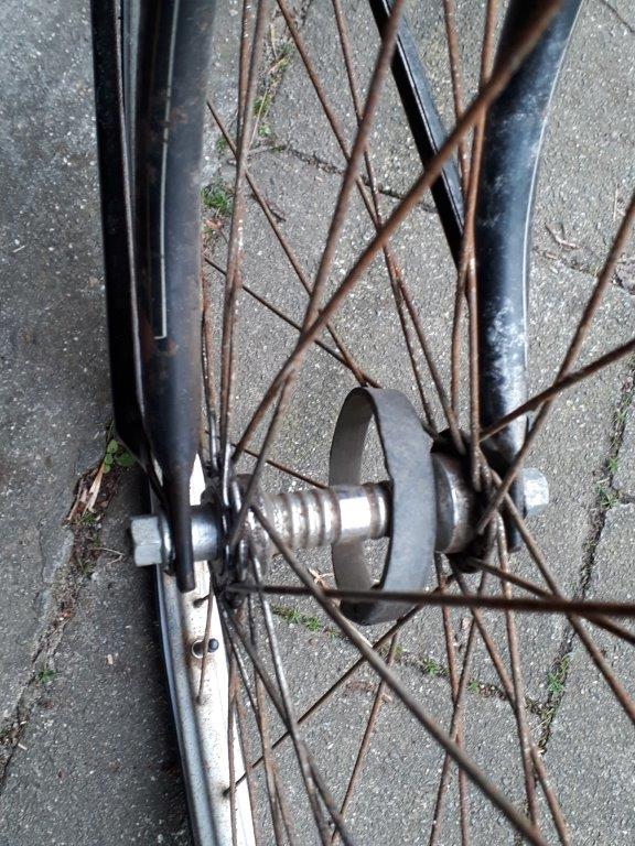 Het zullen inderdaad wel de originele wielen zijn, getuige deze fiets - een internetfoto - die ook die grote ruimte heeft.